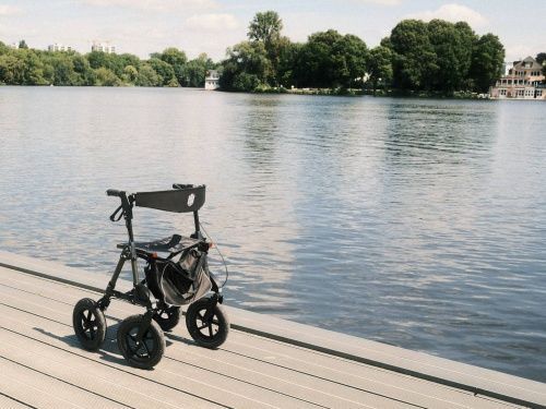 Geländerollator robuster Outdoor Rollator mit Luftbereifung Sitz Lehne faltbar leicht