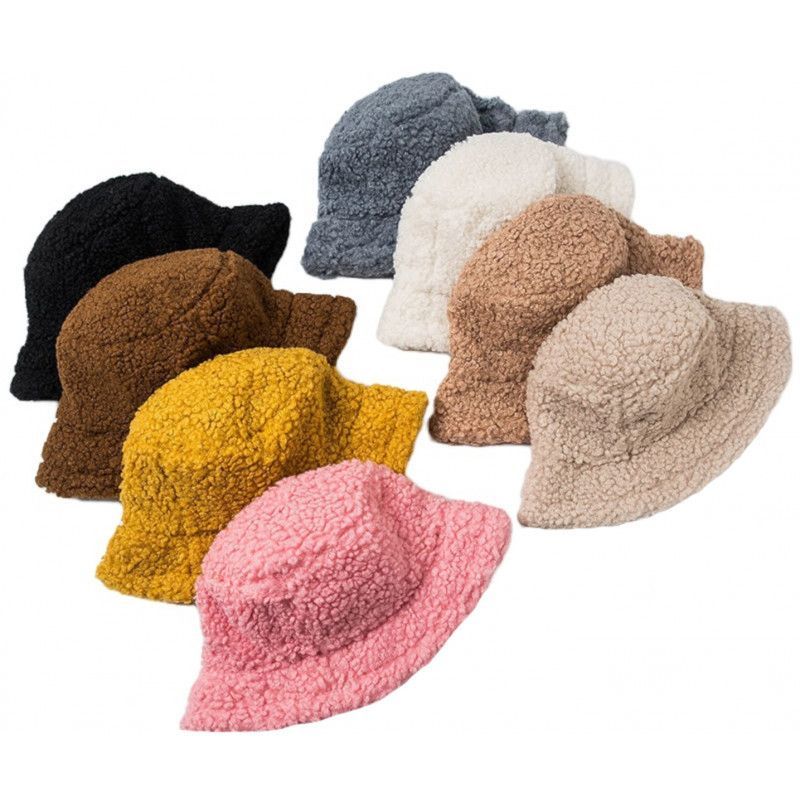 Beige Lammwolle Hut - Frauen Teddy Fell Hüte Fischerhüte Eimerhüte Bucket Hats