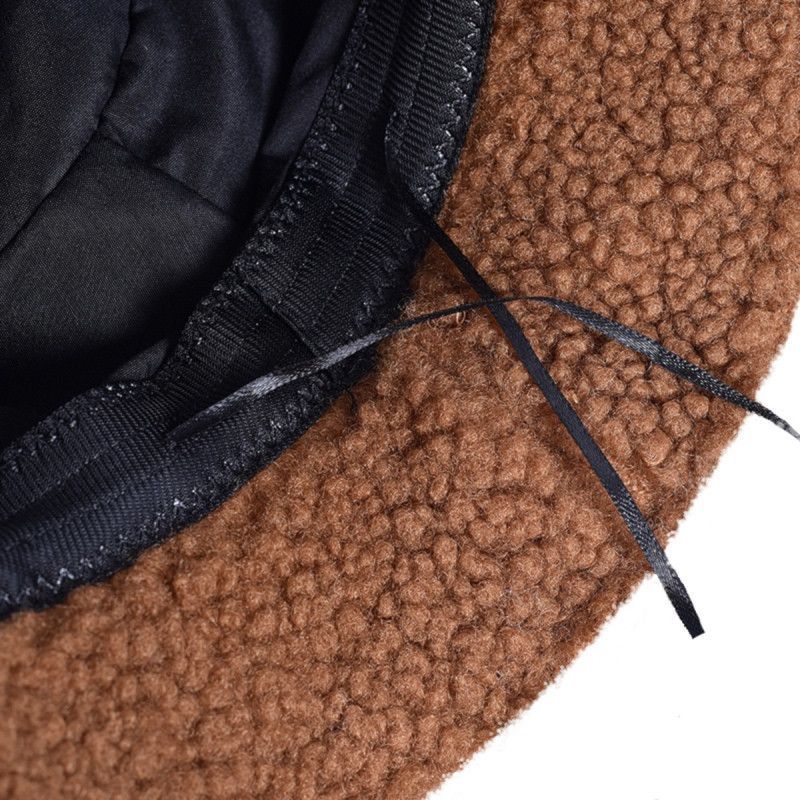 Khaki Lammwolle Hut - Frauen Teddy Fell Hüte Fischerhüte Eimerhüte Bucket Hats