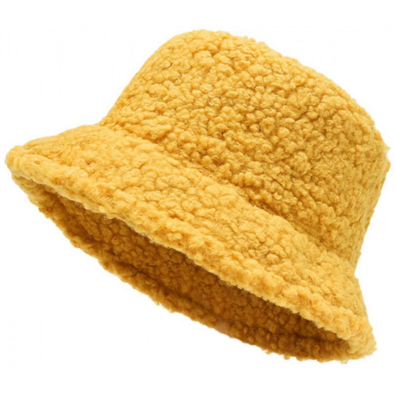 Gelbe Lammwolle Hut - Frauen Teddy Fell Hüte Fischerhüte Eimerhüte Bucket Hats