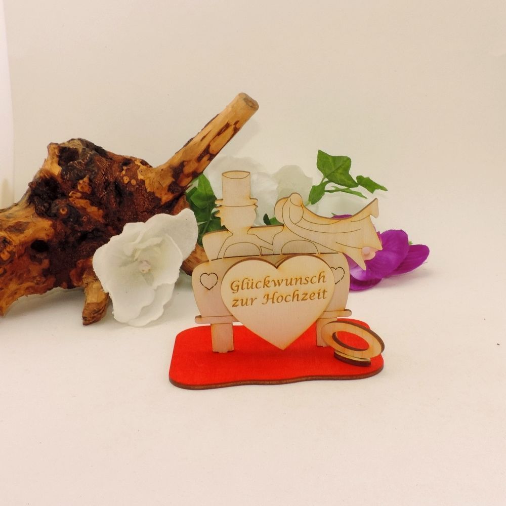 Geld-Geschenk zur Hochzeit Auto mit Herz graviert 10cm Holz Flitterwochen Urlaub