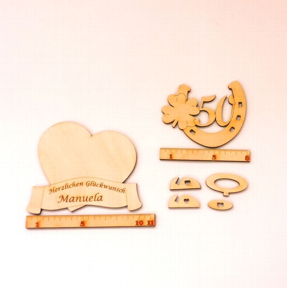Geldgeschenk Goldene Hochzeit 50, Hufeisen Herz mit Namen des Brautpaares Holz
