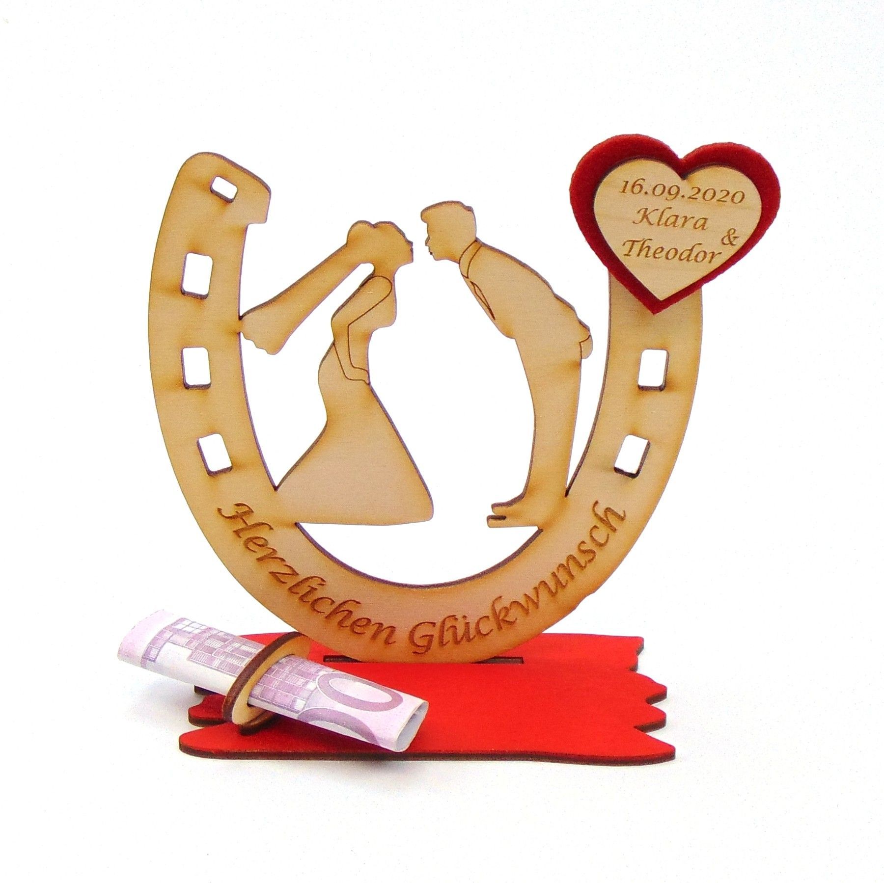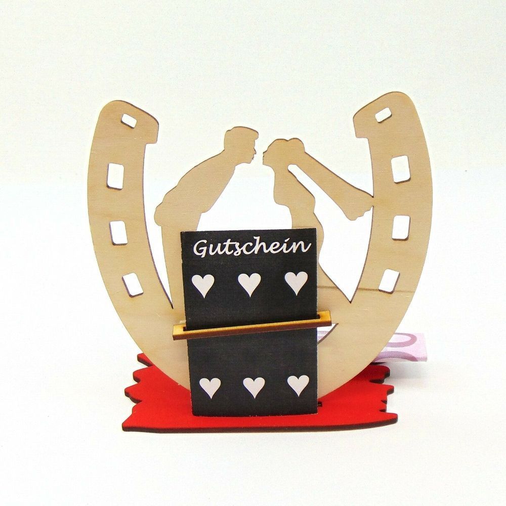 Geldgeschenk Gutschein Halter Brautpaar küssend im Hufeisen Personalisiert