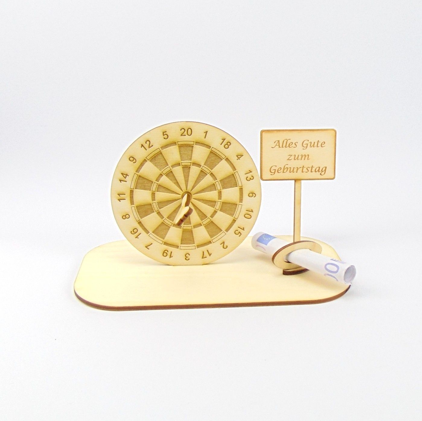 Geldgeschenk Holz Dartscheibe mit Pfeil witzigem Spruch Alles Gute zum K78