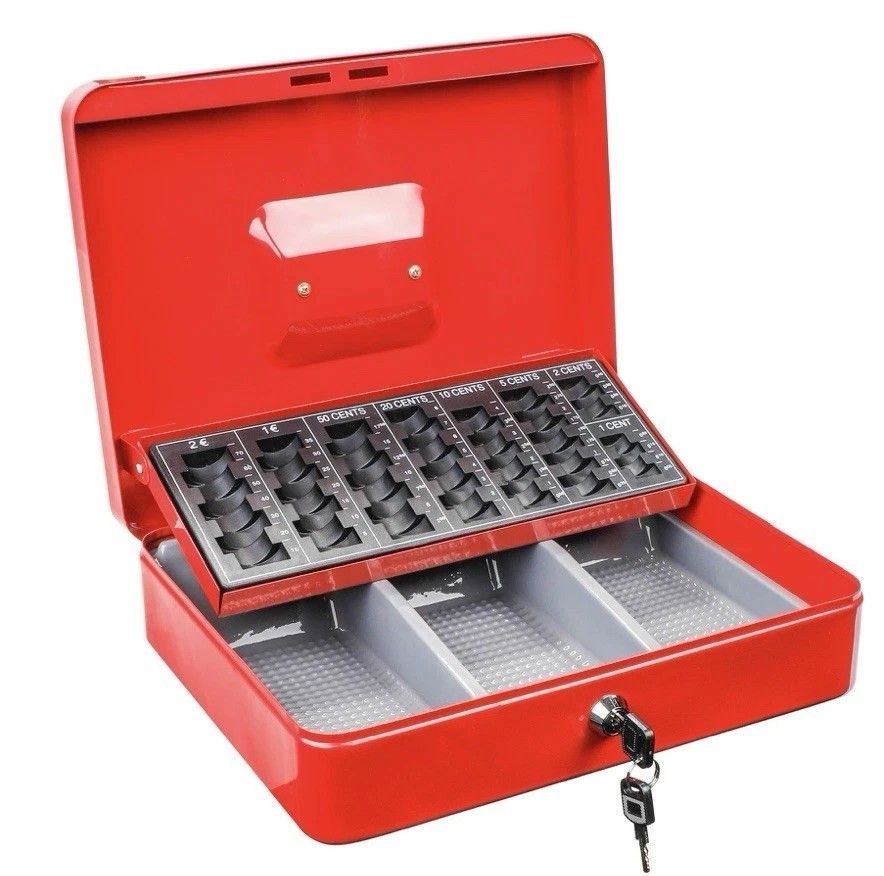 Haushalt International Geldkassette aus Stahl Maße: ca. 30x24x9cm Rot sortiert Geld Kassette Kasse
