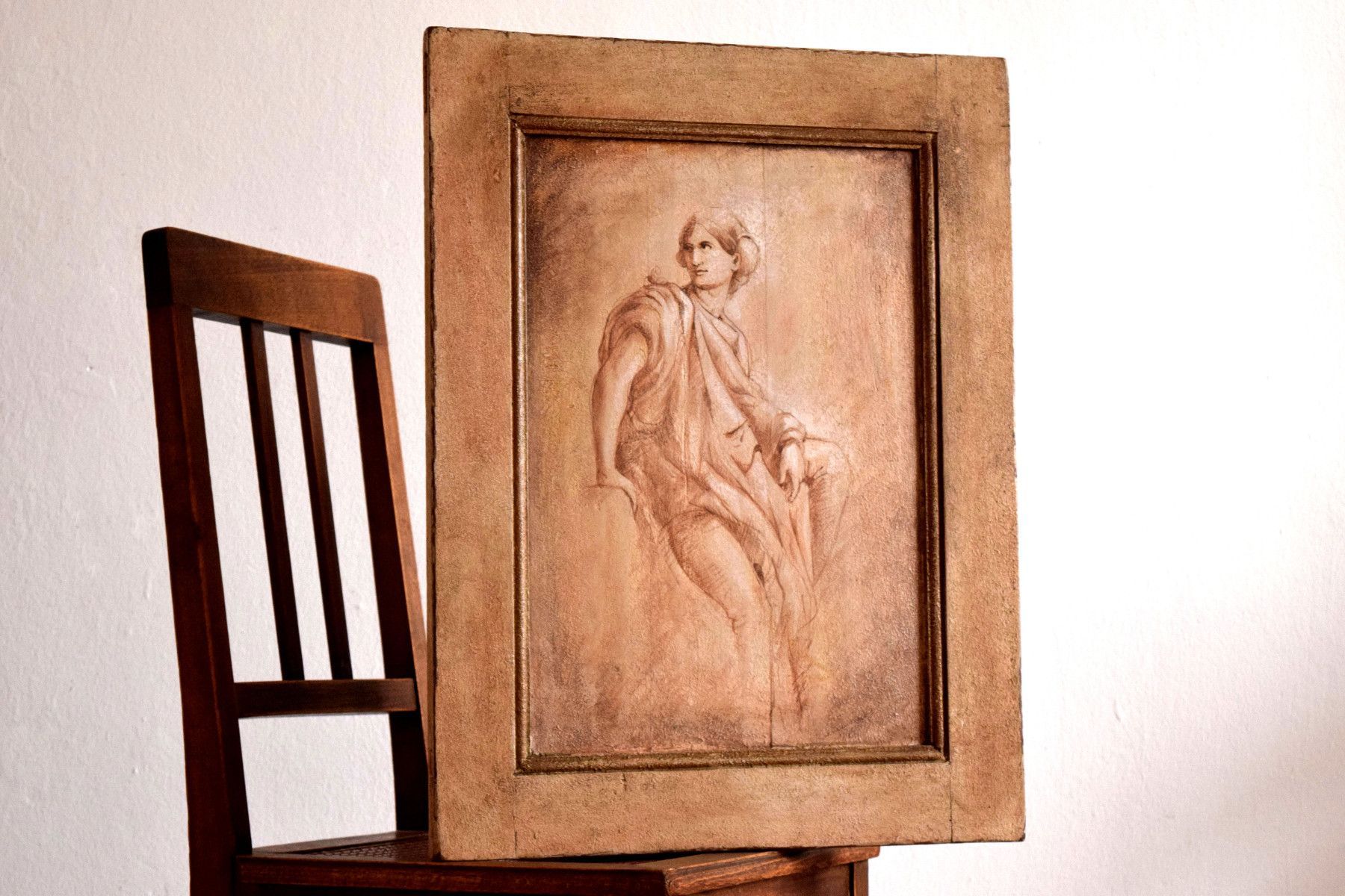 großes Gemälde nach Raphael "Phrygische Sibylle" Malerei auf einer Kassette aus Teakholz (Fine Art Reproduction) Höhe 61cm, Breite 45cm, Tiefe 5cm inkl. Wandaufhängung schöner Vintage- Zustand, gepflegt Der Versand innerhalb Deutschlands ist kostenfrei.