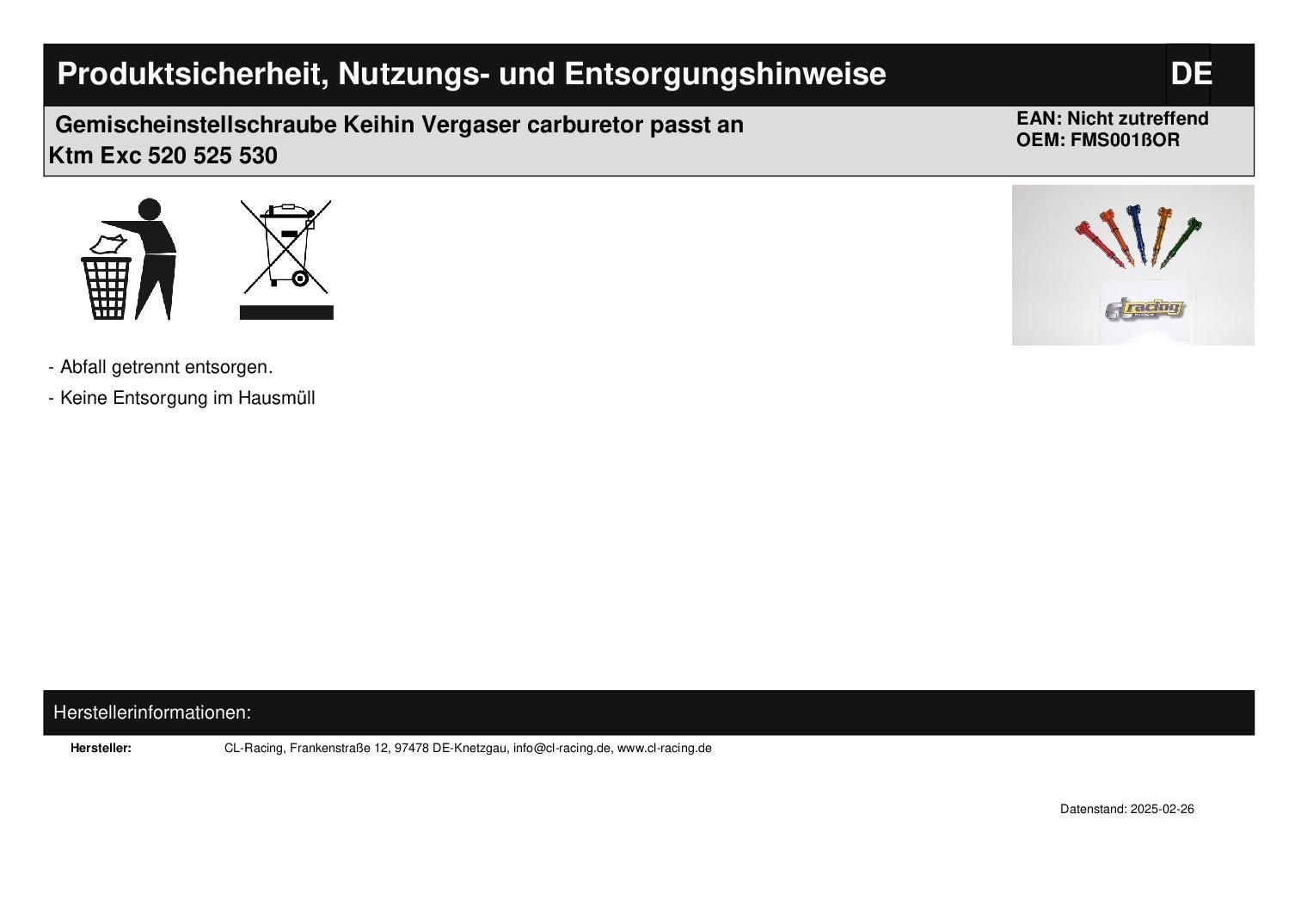 Gemischeinstellschraube Keihin Vergaser carburetor passt an Ktm Exc 520 525 530