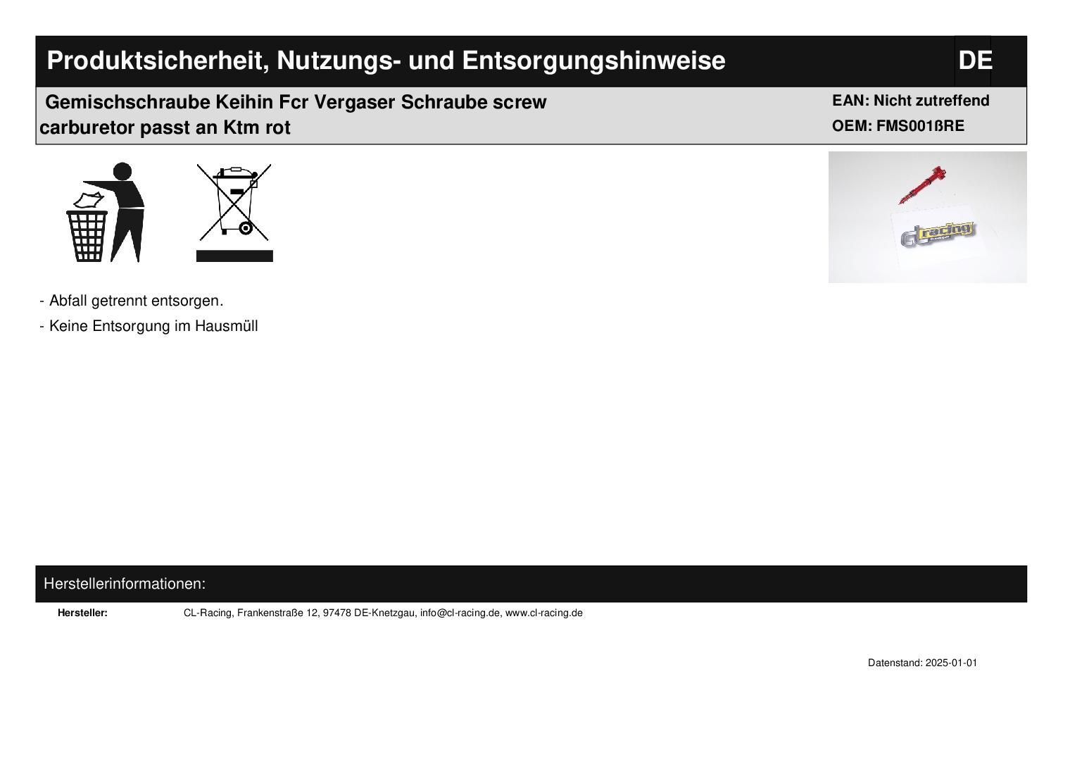 Gemischschraube Keihin Fcr Vergaser Schraube screw carburetor passt an Ktm rot In dieser Auktion gibt es folgenden Artikel zu kaufen: Gemischschraube für Keihin FCR-Vergaser (siehe Foto) Modell: passend für Honda CR-F 250, 450 (4-Takt) passend für Kawasaki KX-F 250, 450 (4-Takt) passend für KTM EXC-
