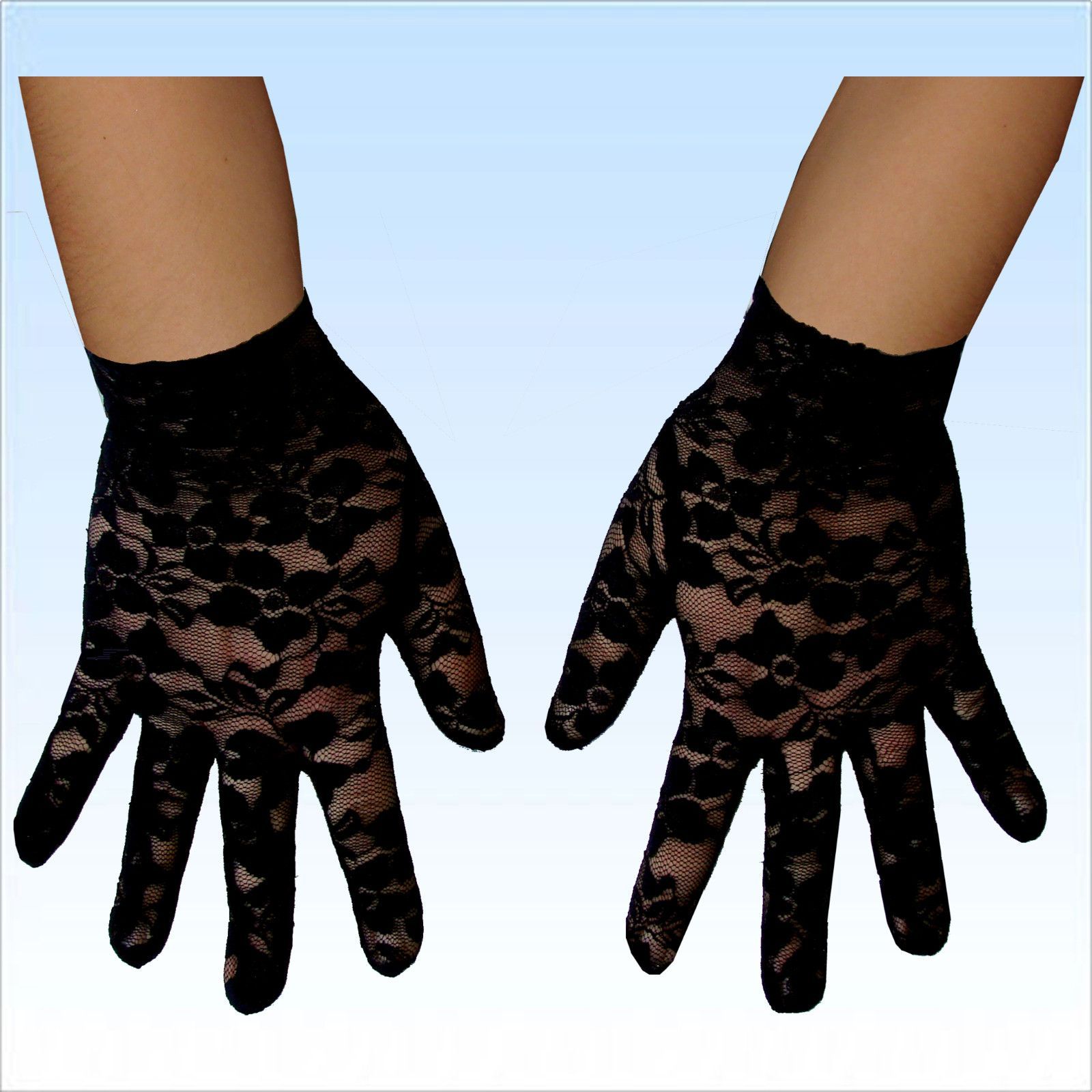 Gemusterte Handschuhe schwarz Handschuh Accessoire Fasching Abendgarderobe