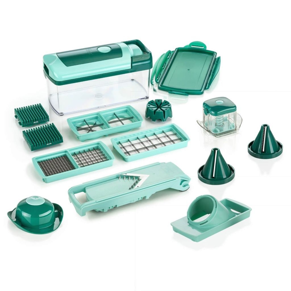 Genius - Nicer Dicer Fusion Julietti Set 16-tlg. Gemüseschneider Multischneider Gemüsehobel Multischneider Reibe Hobel Gemüsereibe