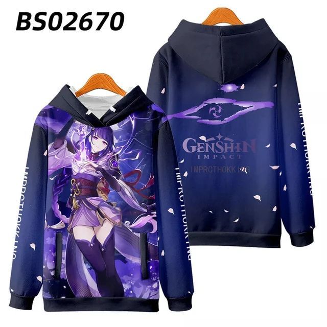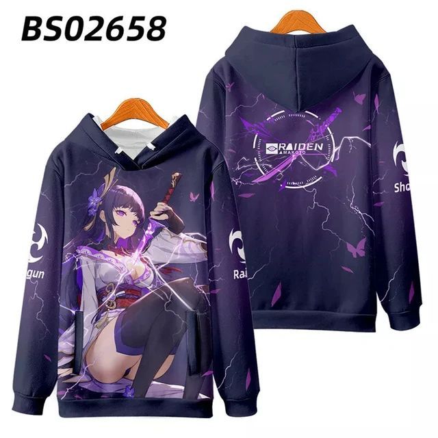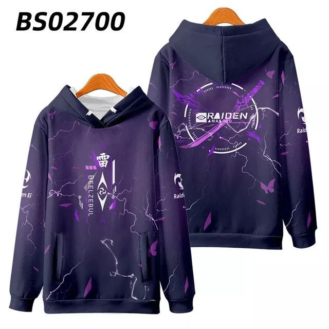 Genshin Impact Raiden Shogun 3D Erwachsene Cosplay Kostum Hoodies Pullover Jacket