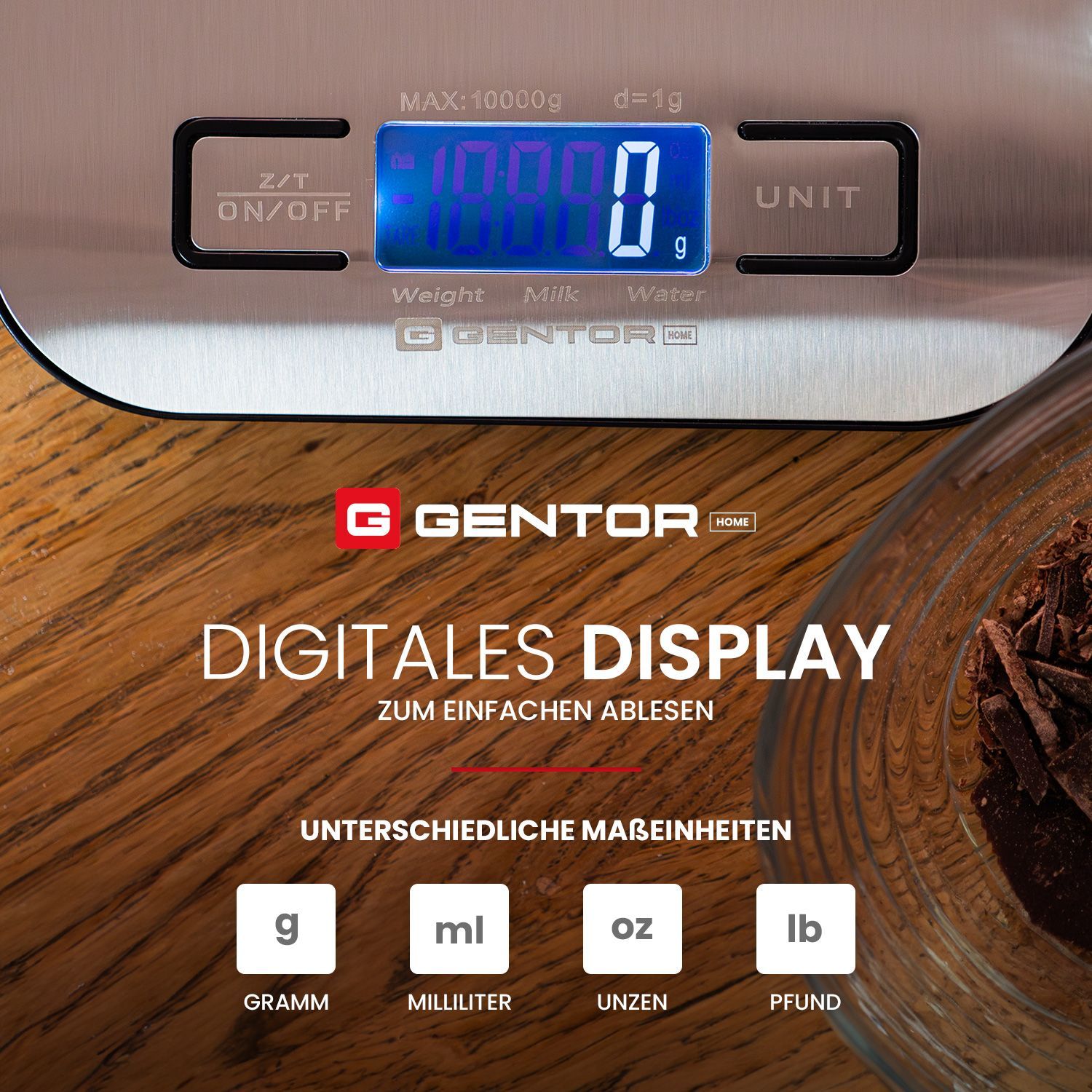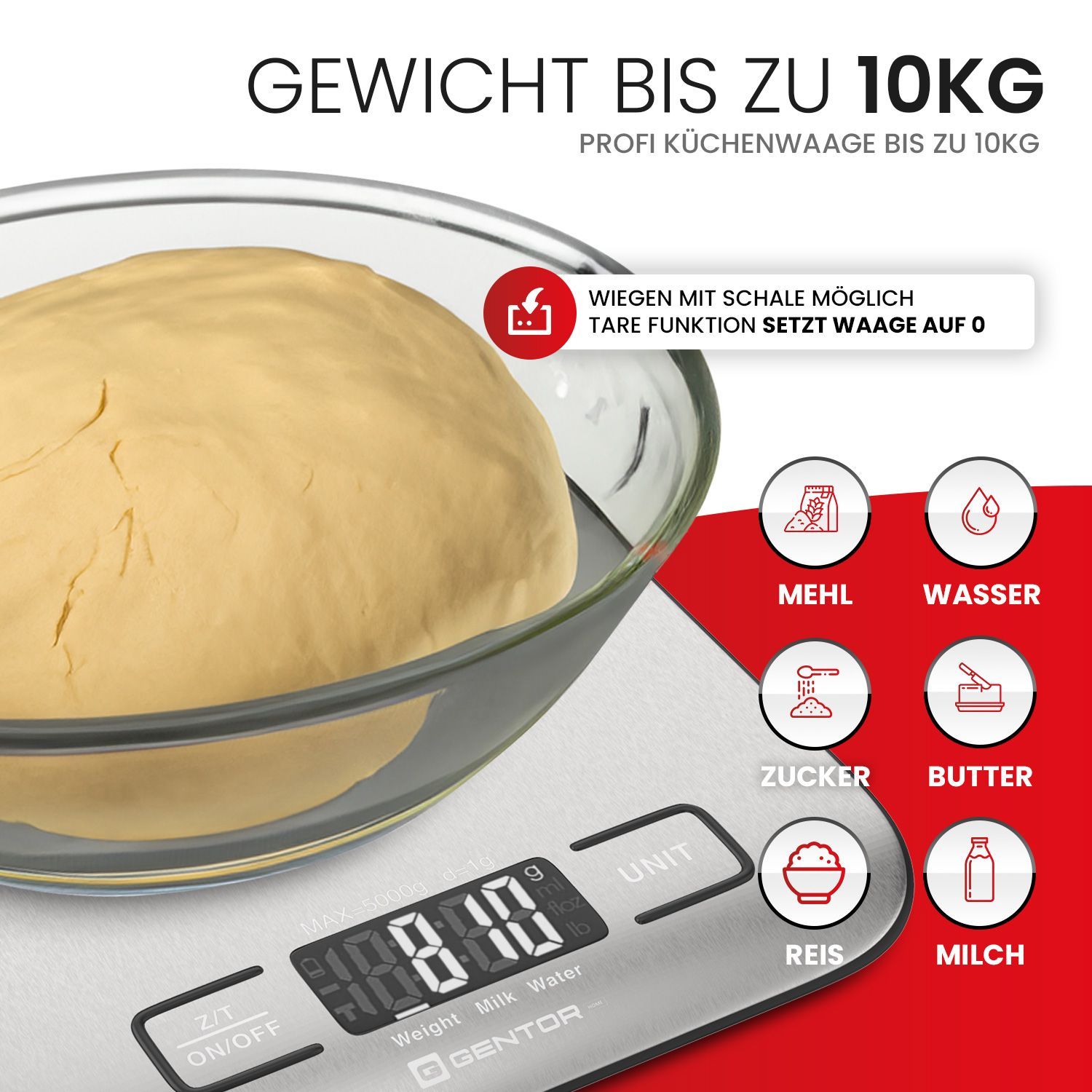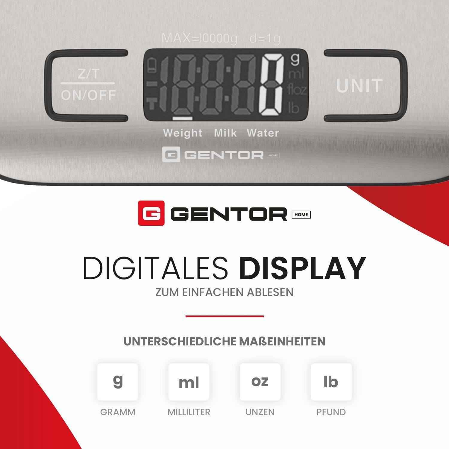GENTOR Küchenwaage Digital, igitalwaage 10kg - auf 1g Präzise Messung, tilvolle
