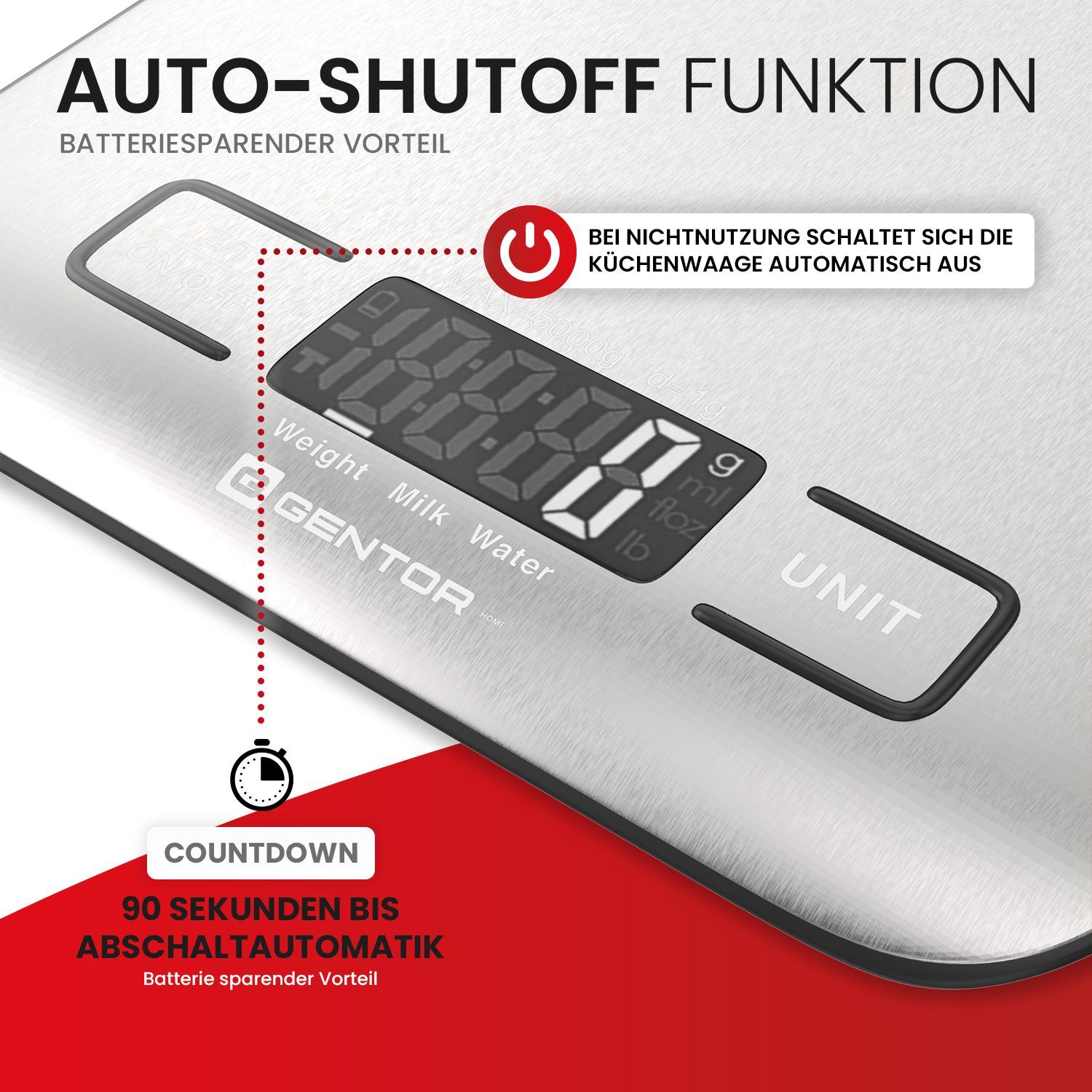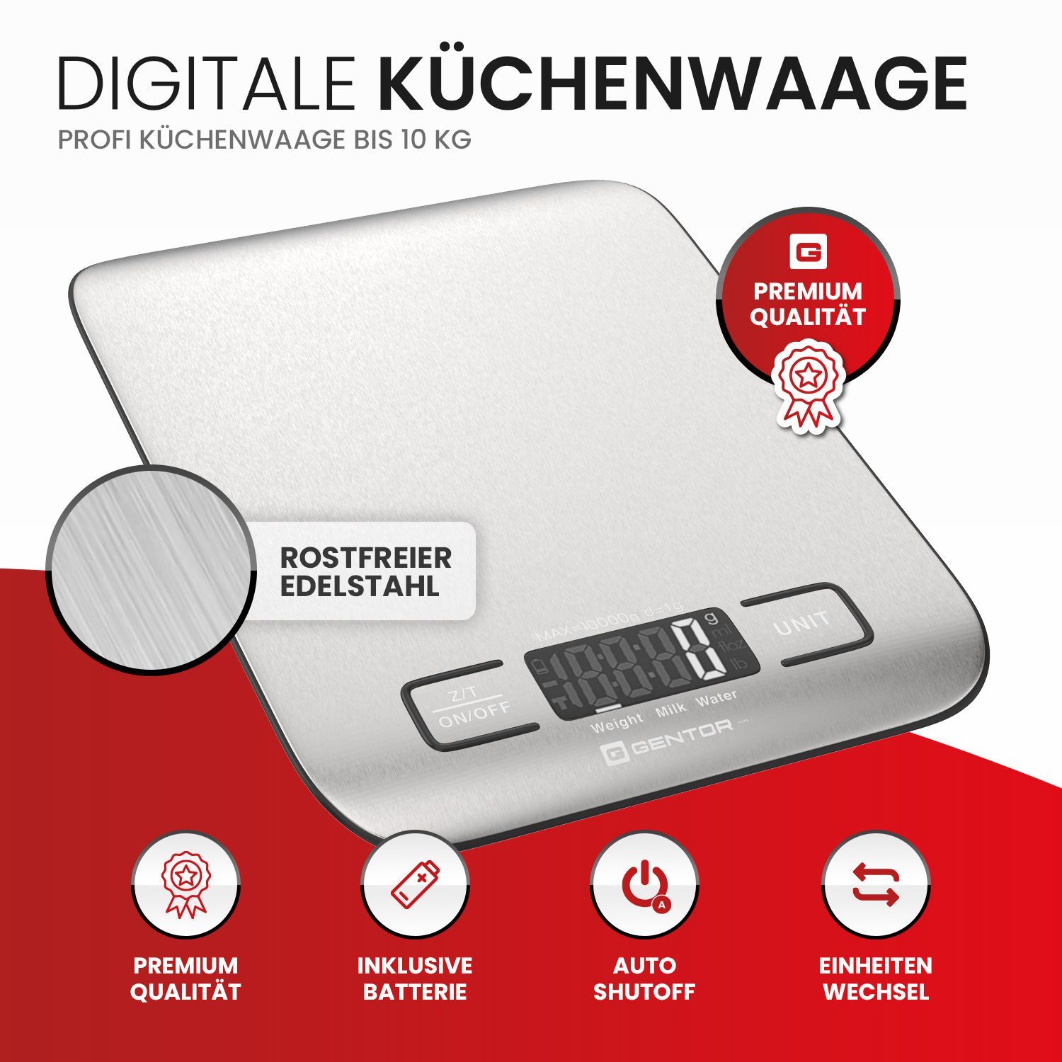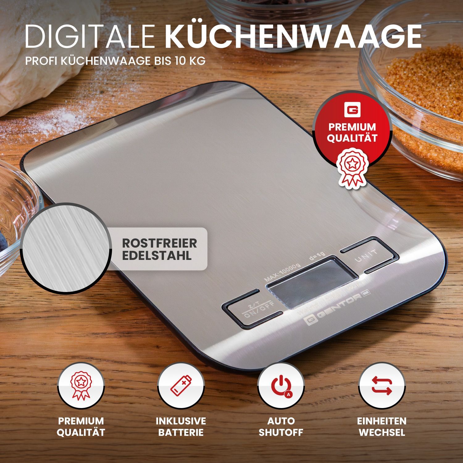 GENTOR Küchenwaage Digital, igitalwaage 10kg - auf 1g Präzise Messung, tilvolle