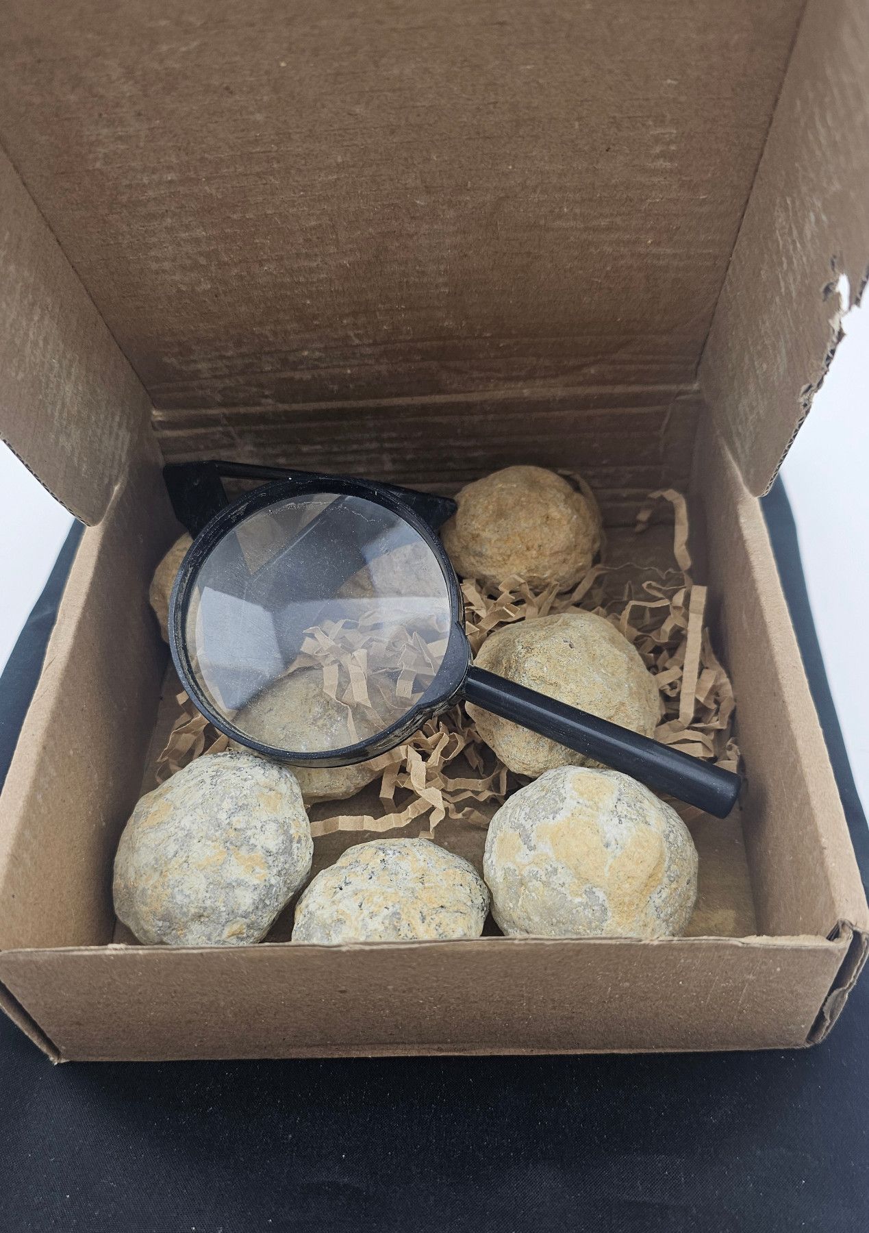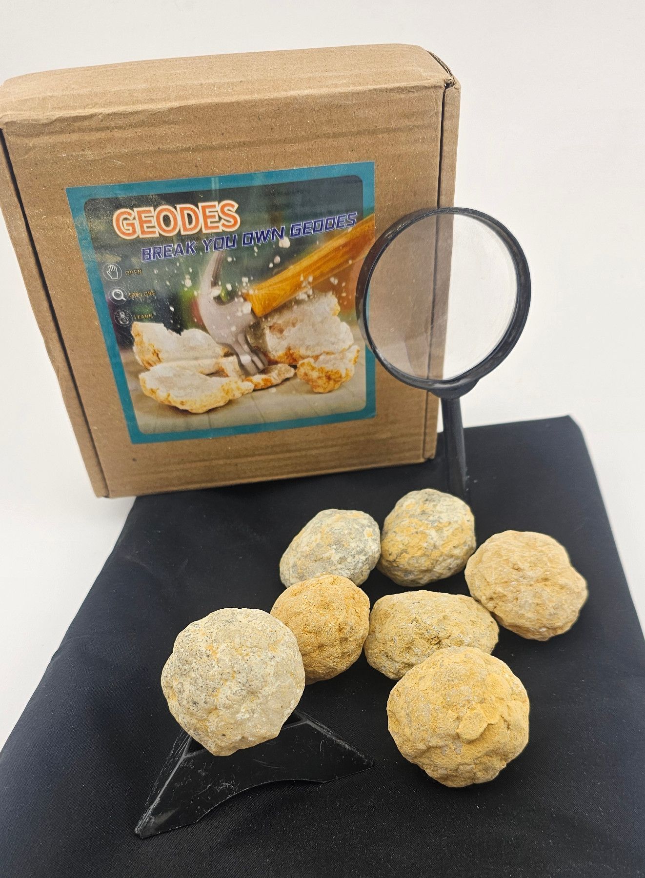 Ein Geoden Set mit geschlossenen Calcit Geoden zum selbst Öffnen in 3 Varianten