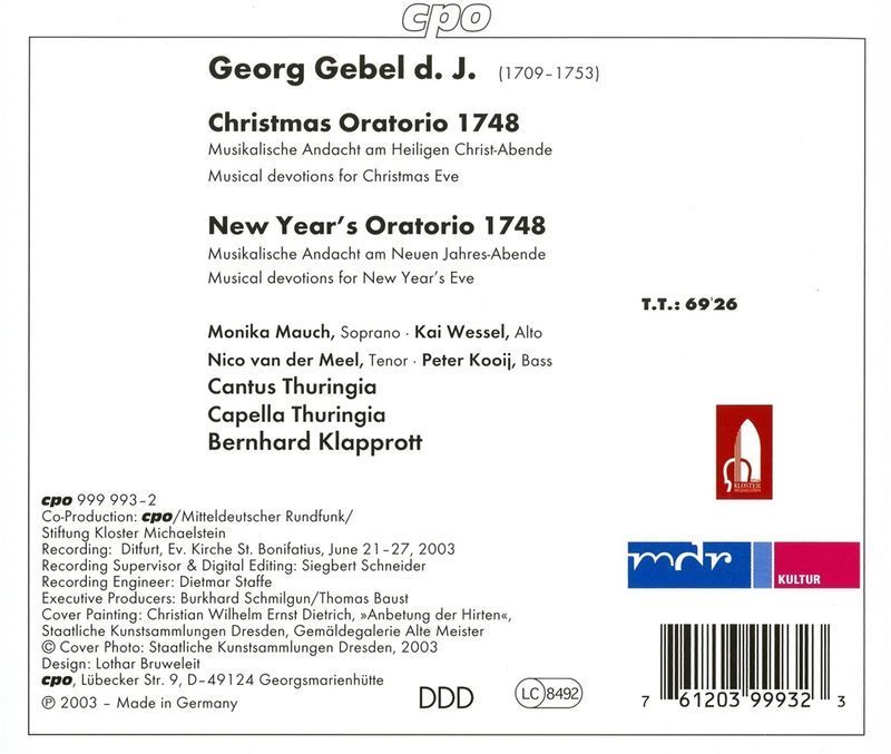 Georg Gebel (1709-1753): Weihnachtsoratorium (1748) - CPO 0761