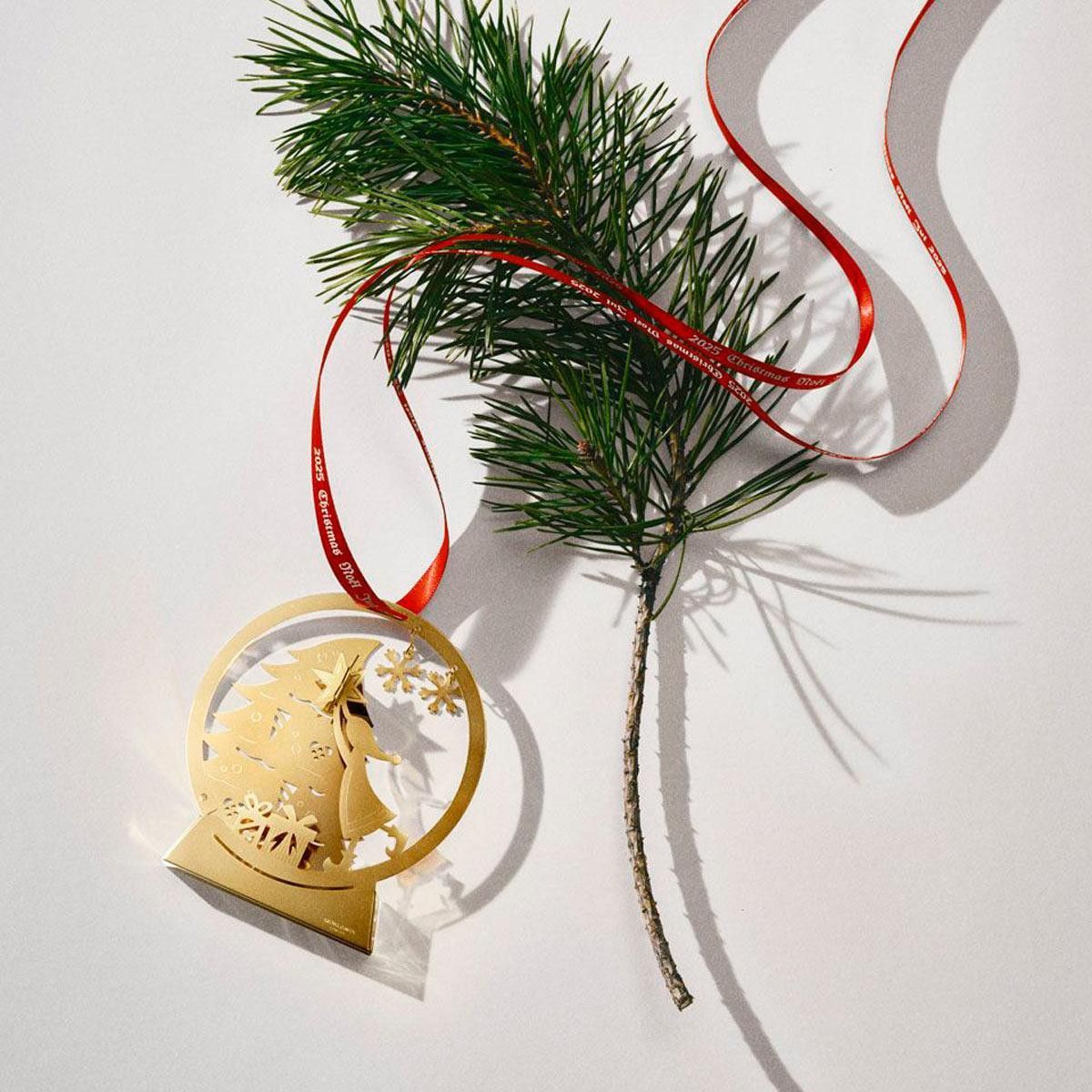 Georg Jensen Georg Jensen 10020796 Weihnachtsmobile 2025 mit rotem Zierband - 18 Karat Goldauflage