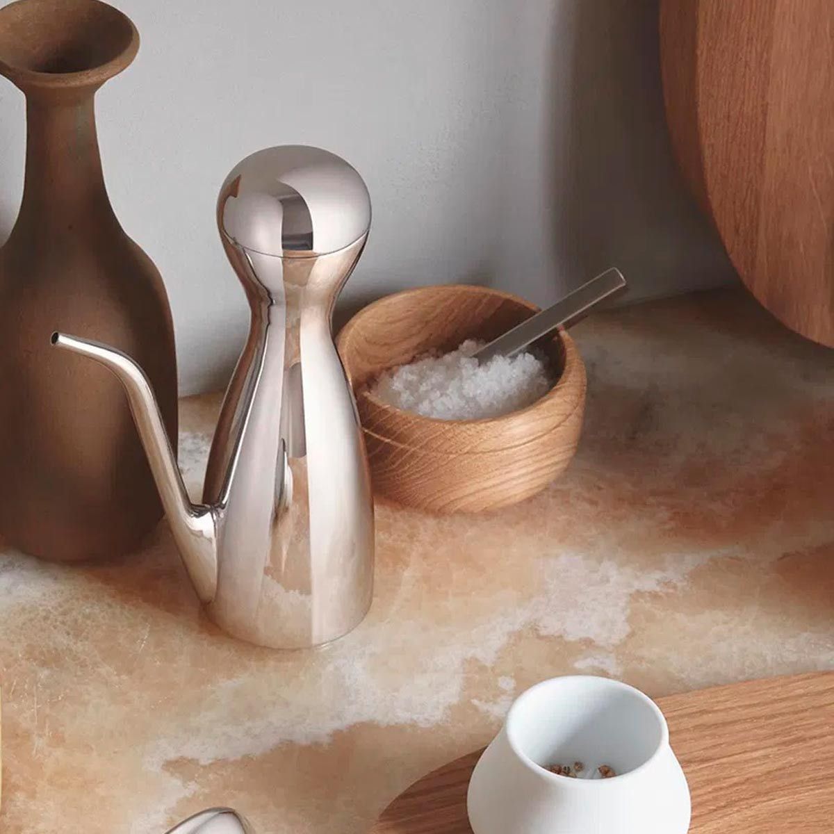 Georg Jensen Georg Jensen Salznapf aus Eichenholz - Gewürzdose mit Deckel aus Edelstahl | 10019509