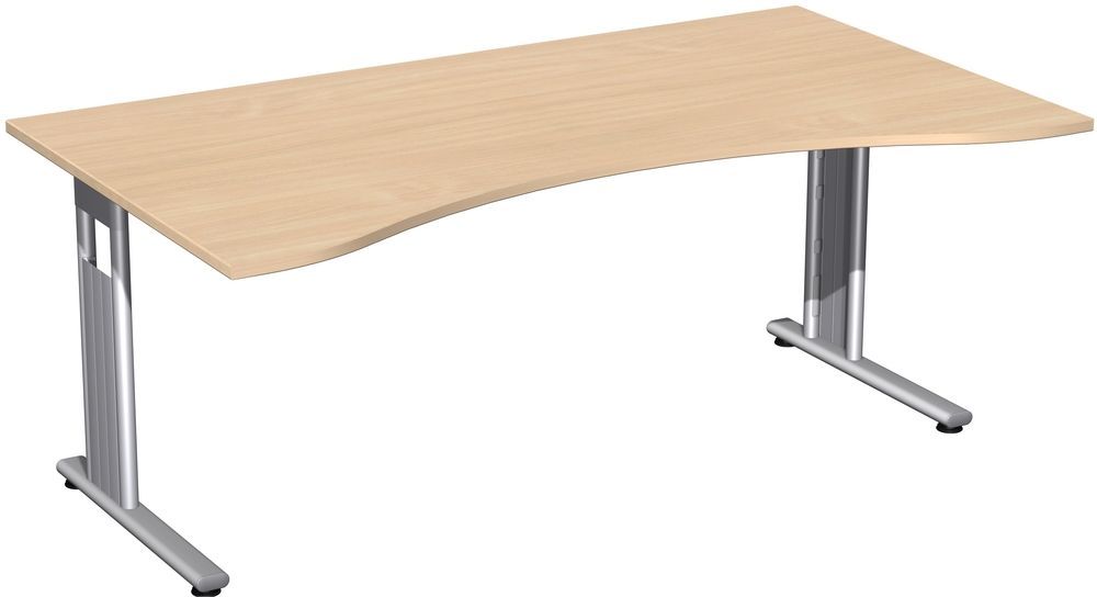 Gera Flex Schreibtisch Ergonomieform feste Höhe, 1800x1000x720, Buche/Silber
