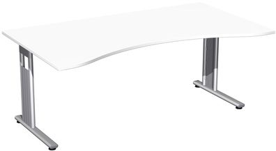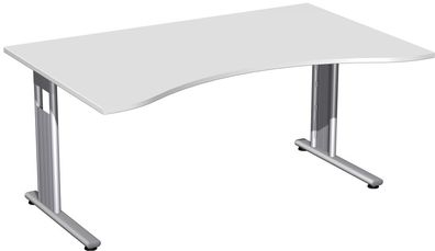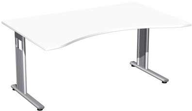 • Gera Flex Schreibtisch Ergonomieform feste Höhe, 1600x1000x720, Weiß/Silber