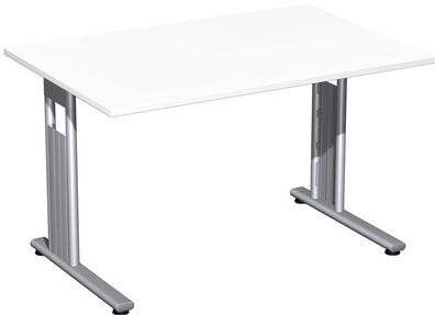 • Gera Flex Schreibtisch feste Höhe, 1200x800x720, Weiß/Silber