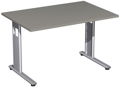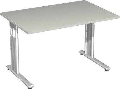 • Gera Flex Schreibtisch feste Höhe, 1200x800x720, Lichtgrau/Silber