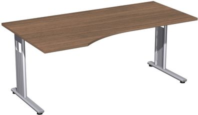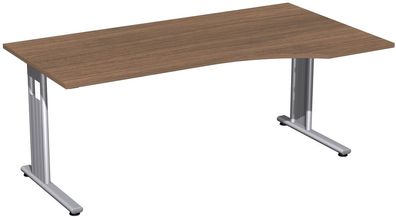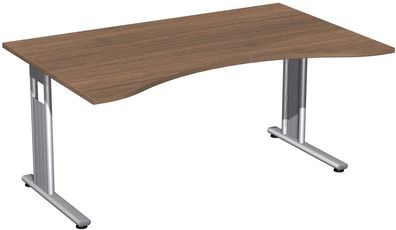 • Gera Flex Schreibtisch Ergonomieform feste Höhe, 1600x1000x720, Nussbaum/Silber