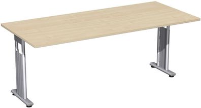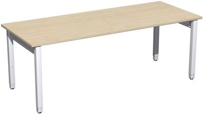 • Gera Quadrat Pro Schreibtisch höhenverstellbar, 2000x800x680-860, Ahorn/Silber