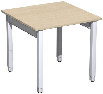 • Gera Quadrat Pro Schreibtisch höhenverstellbar, 800x800x680-860, Ahorn/Silber
