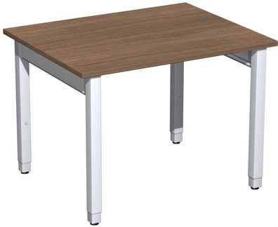 • Gera Quadrat Pro Schreibtisch höhenverstellbar, 1000x800x680-860, Nussbaum/Silber