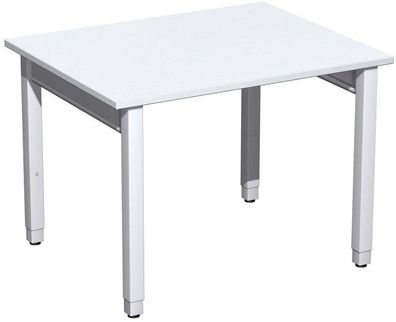 • Gera Quadrat Pro Schreibtisch höhenverstellbar, 1000x800x680-860, Weiß/Silber