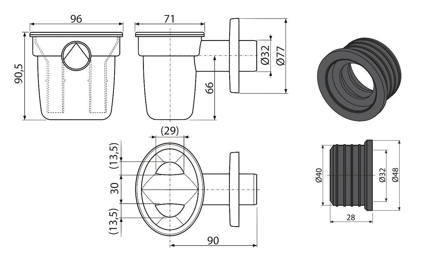Geräte Siphon Trichter Tropfwasser Sifon Kondensat Entfeuchter Wärmepumpe DN40