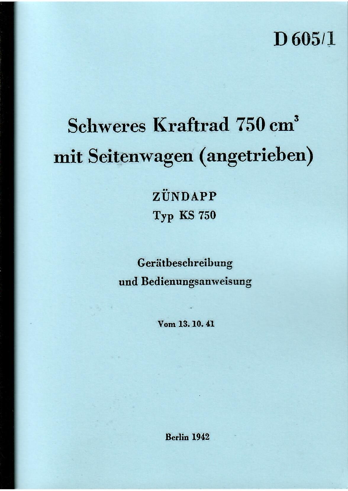 Gerätebeschreibung & Bedienungsanweisung Zündapp KS 750, Kraftrad, Oldtimer