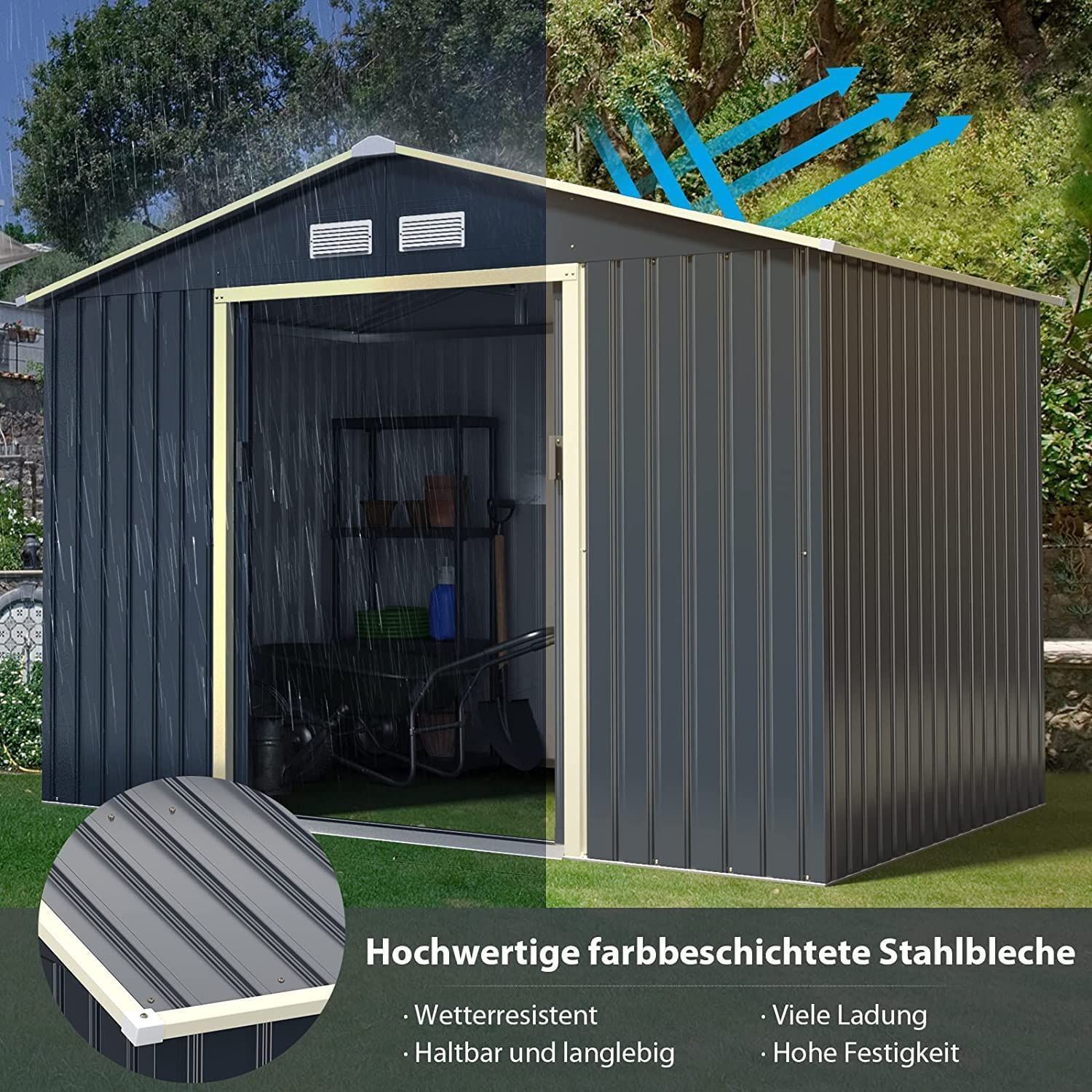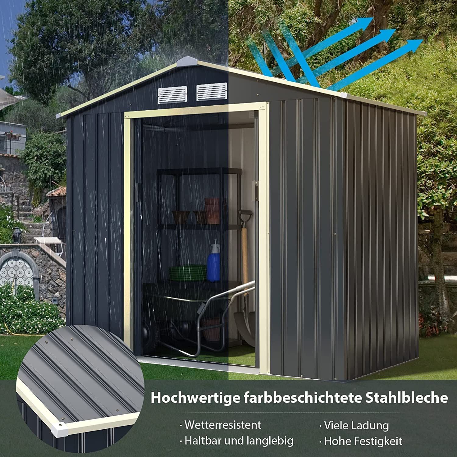 Gerätehaus Geräteschuppen abschließbar, Gartenhaus mit 4 Luftschlitzen & Schiebetür