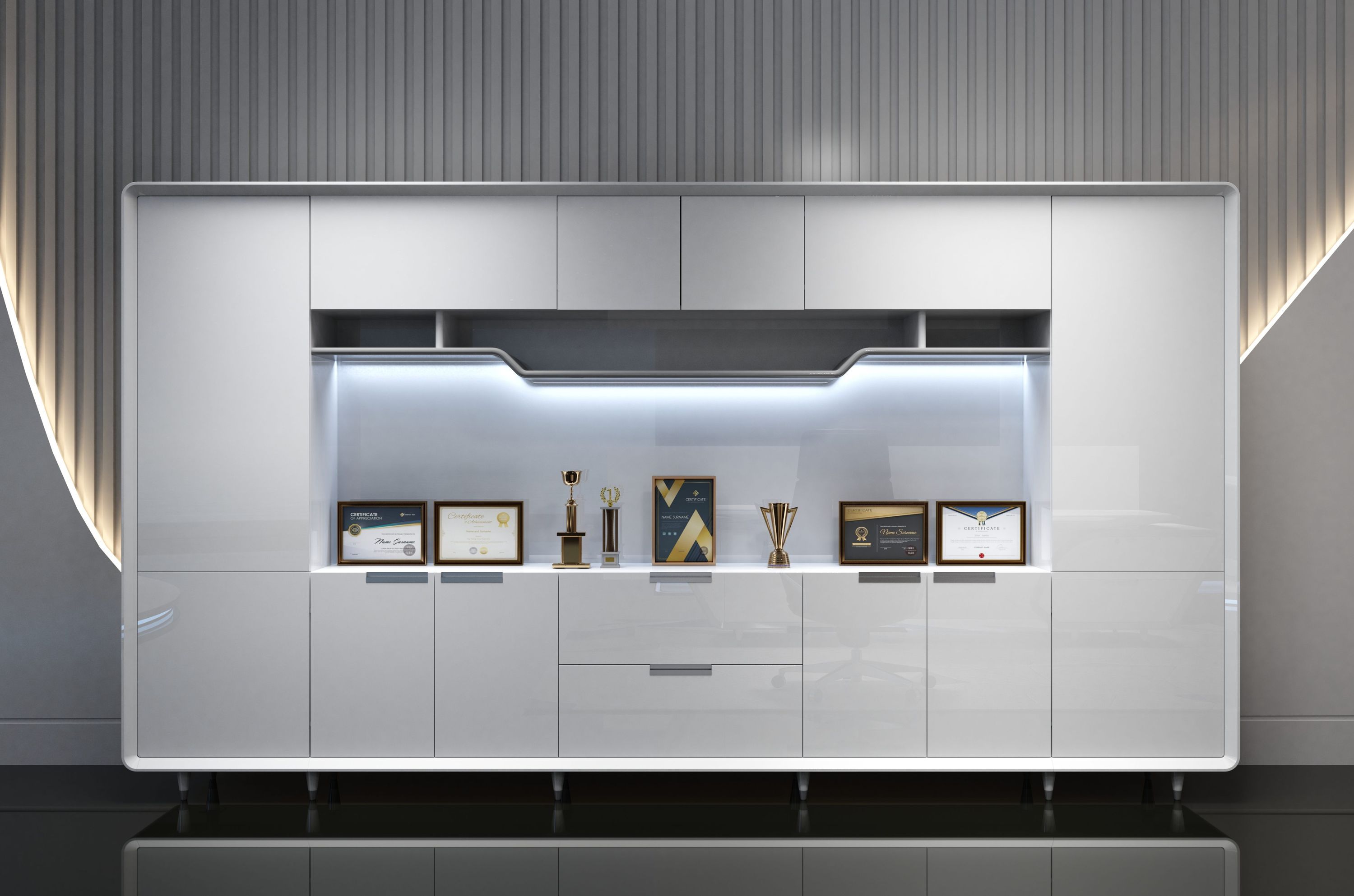 Geräumiger Weißer Büroschrank im modernen Design 360x45x200 cm