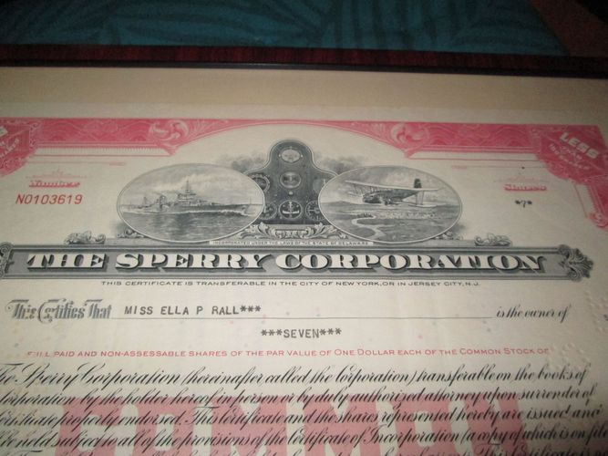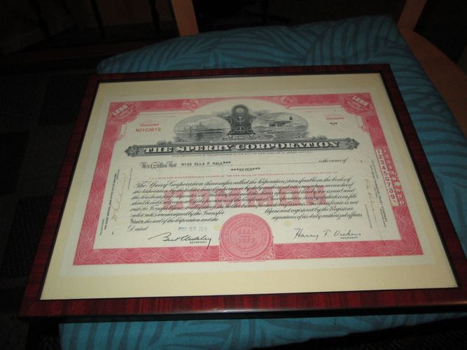 Gerahmte original Aktie "The Sperry Corporation" von 1955 7 anteile guter zustand