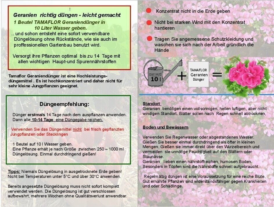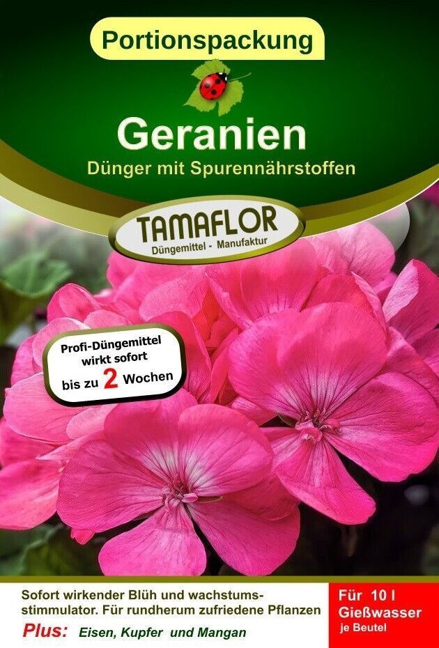 Geraniendünger Pflanzendünger wirkt sofort 5 Portionsbeutel für 50 l
