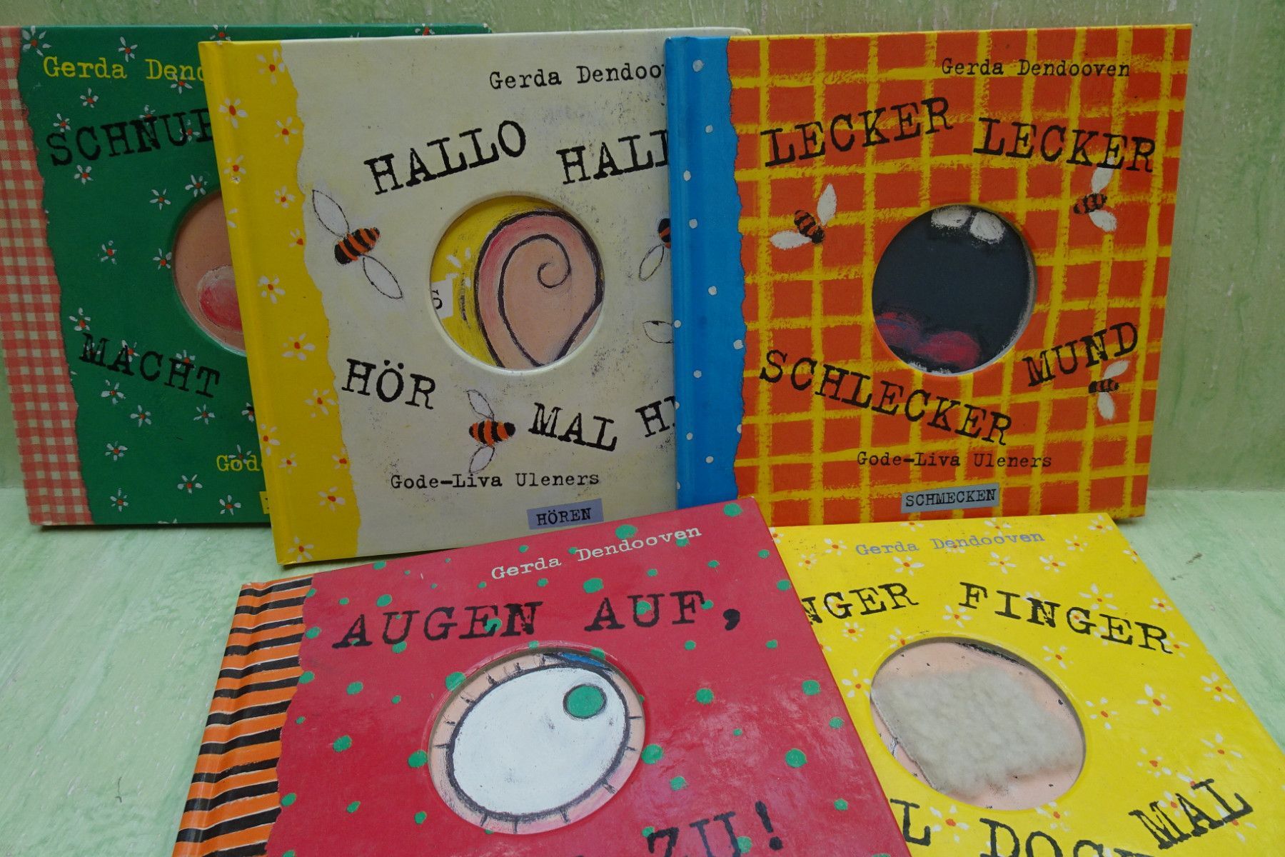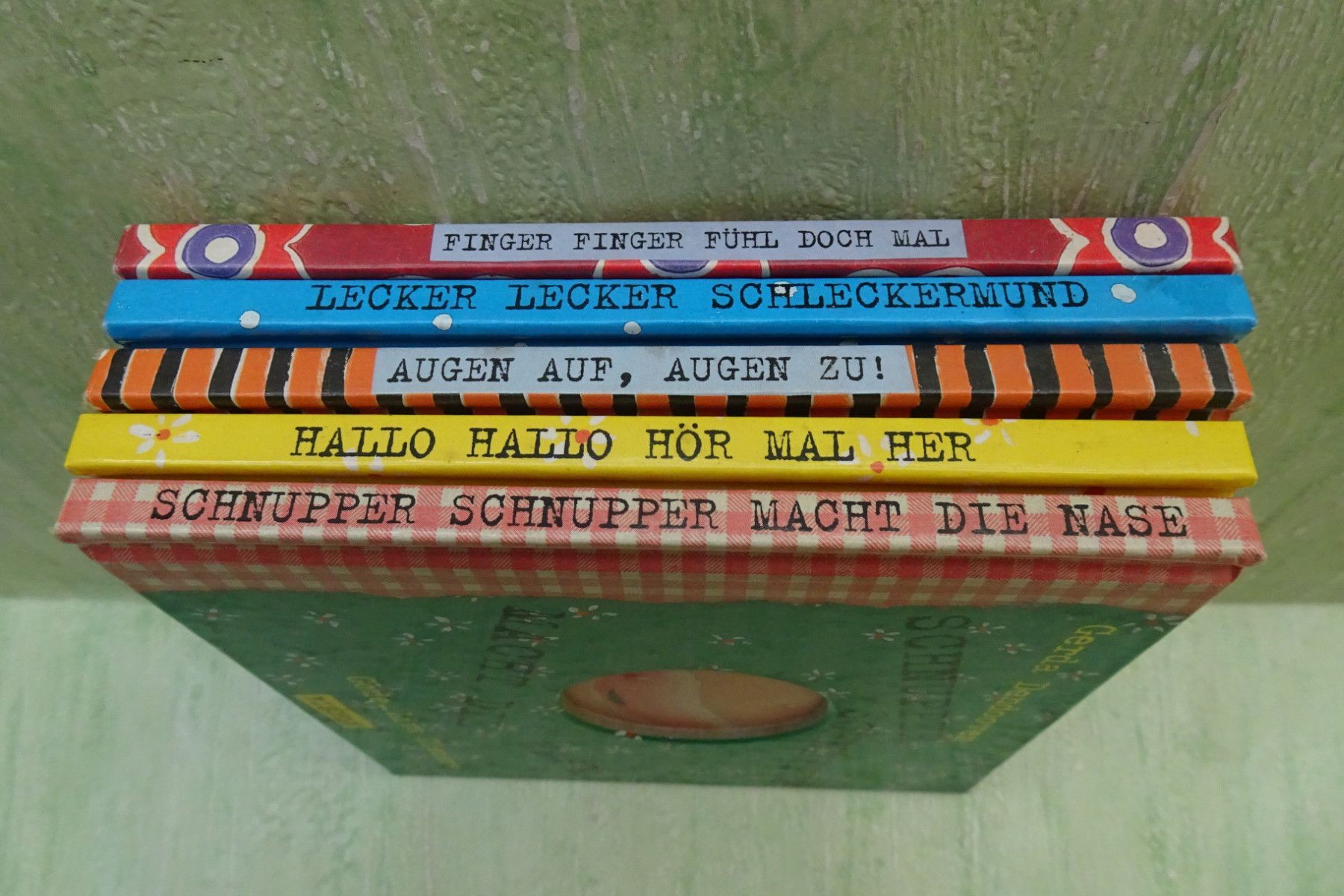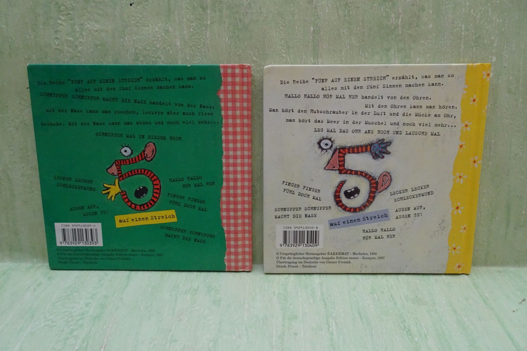 Jugend- & Kinderbücher ... Erinnerungen ..... Edition moses, Kempen 1997 HC Format ca 16 x 16 cm 5 Bücher : Riechen Hören Gucken Fühlen Schmecken Ecken minimal bestoßen , gut++ mini Bücher Abkürzungen: Buchschnitt : BS Buchecken : BE Buchrand : BR Seiten : S Fadenbindung : FB Hardcover : HC Tasc