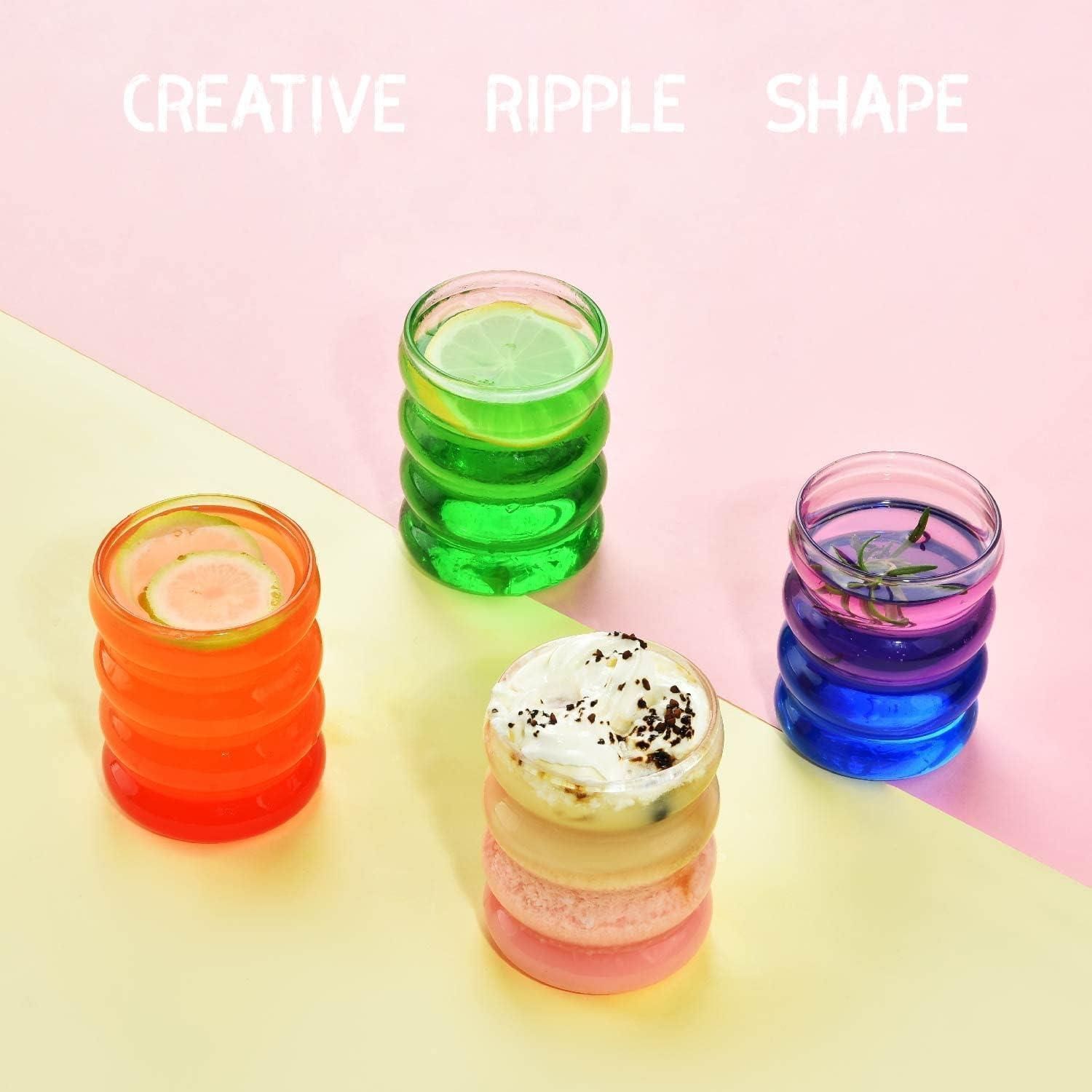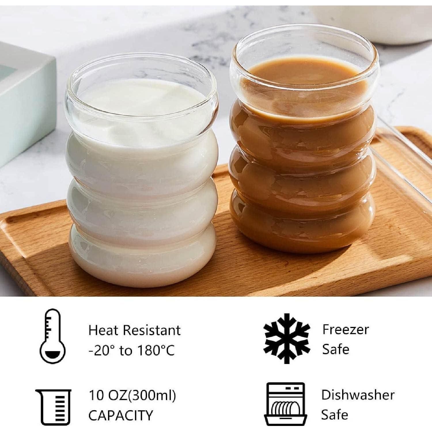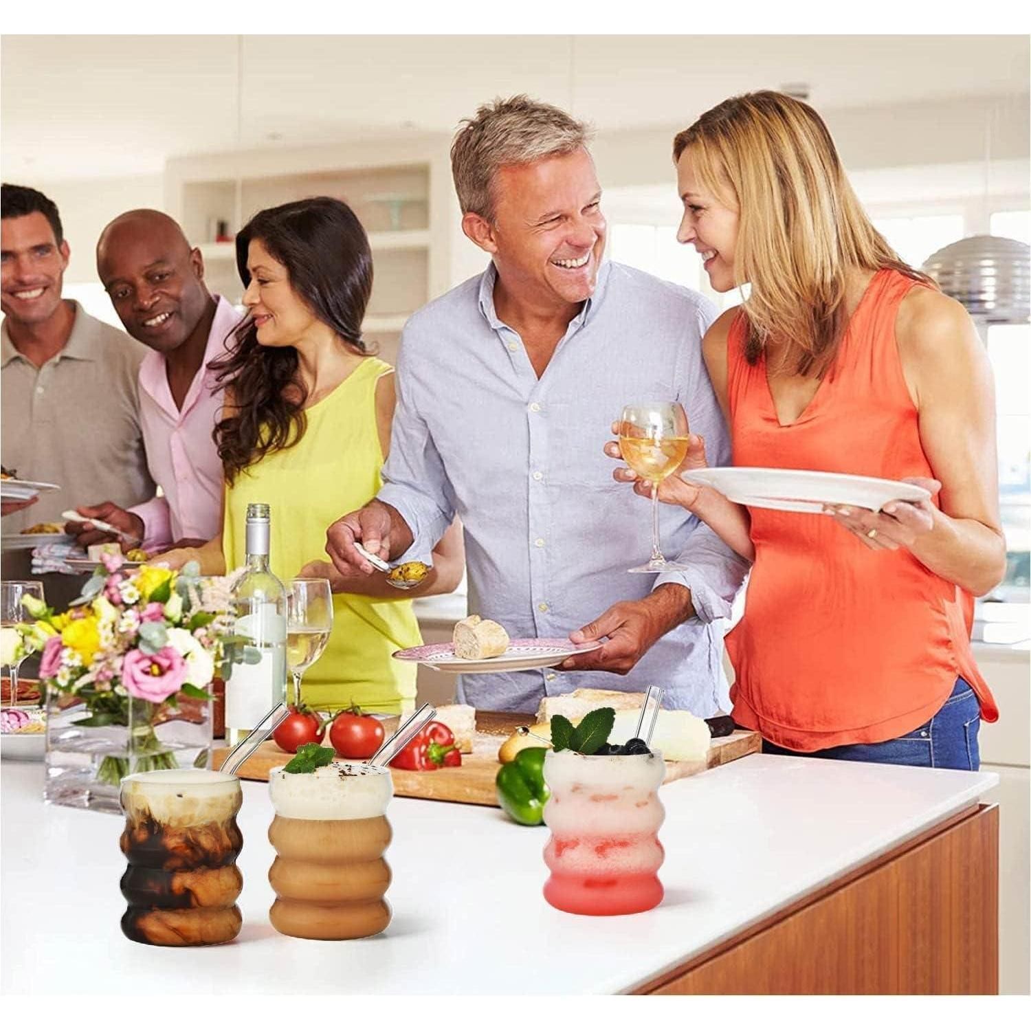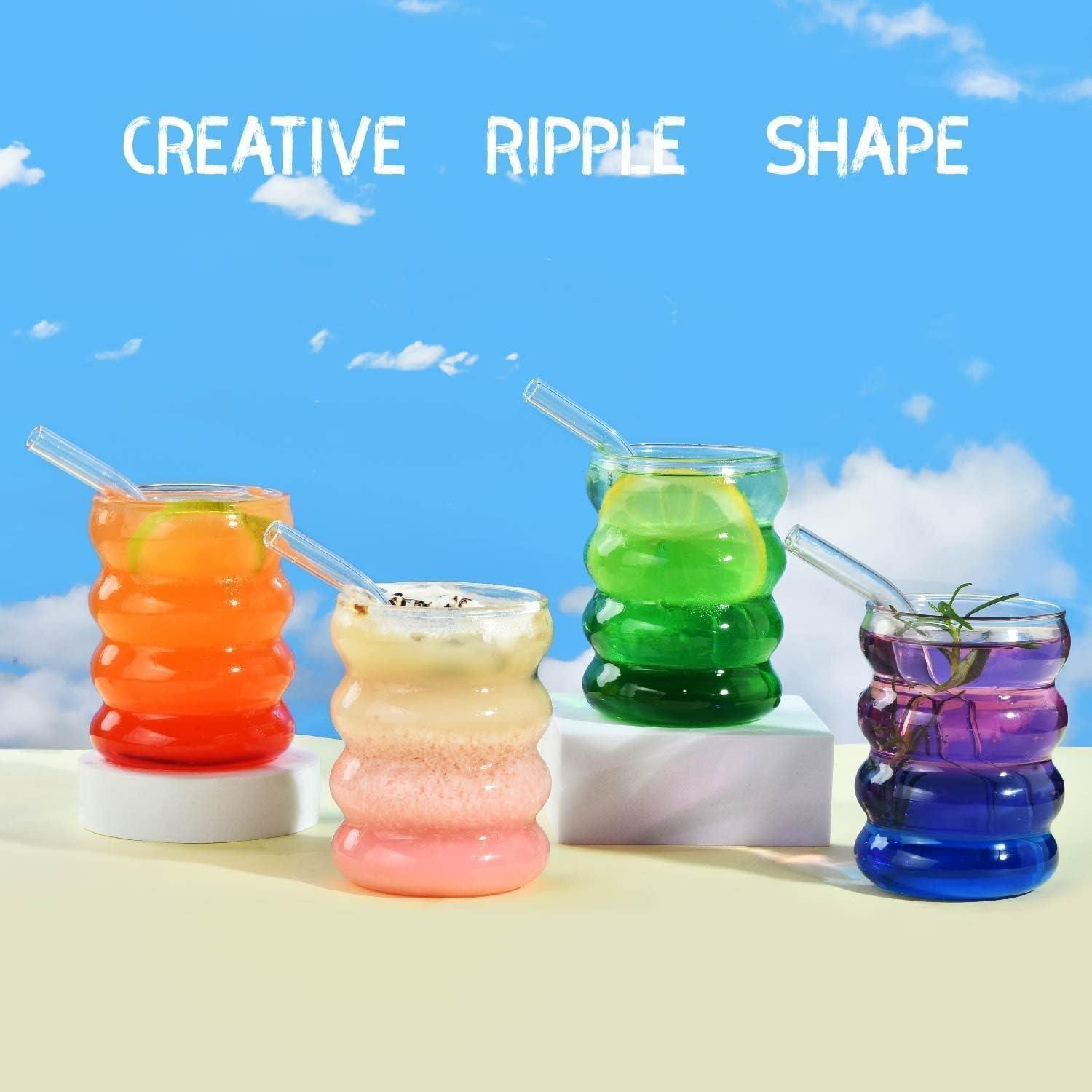 Gerippte Trinkgläser mit Glasstrohhalmen 4er Set 350ml Wave Gläser Tumbler
