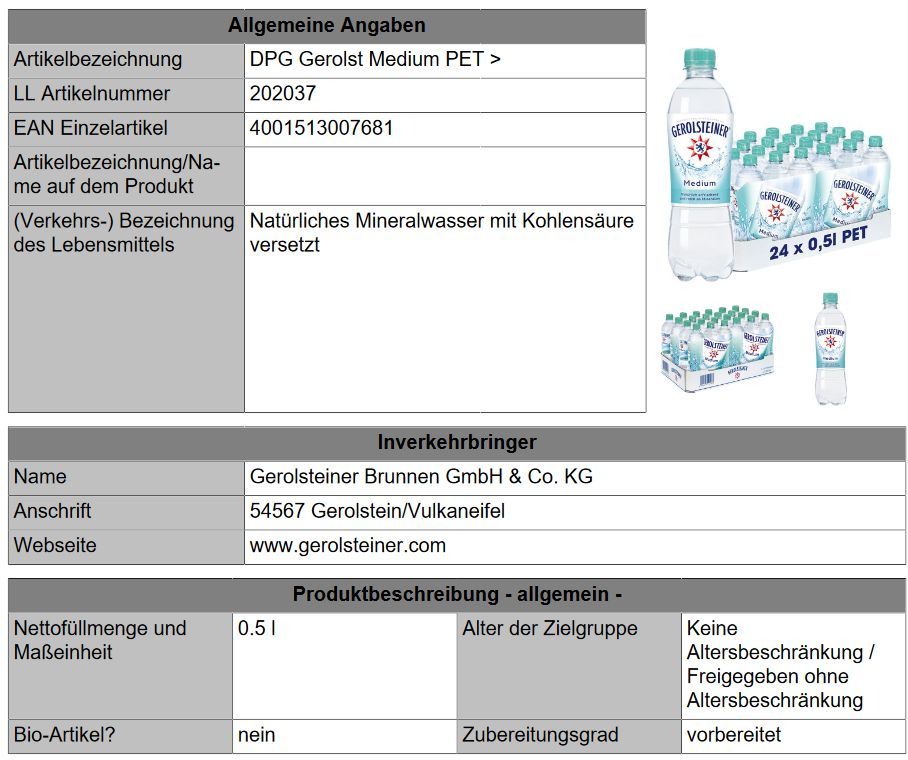 Gerolsteiner Medium Mineralwasser Gerolsteiner Brunnen 24x0.50l Einweg-Pfand