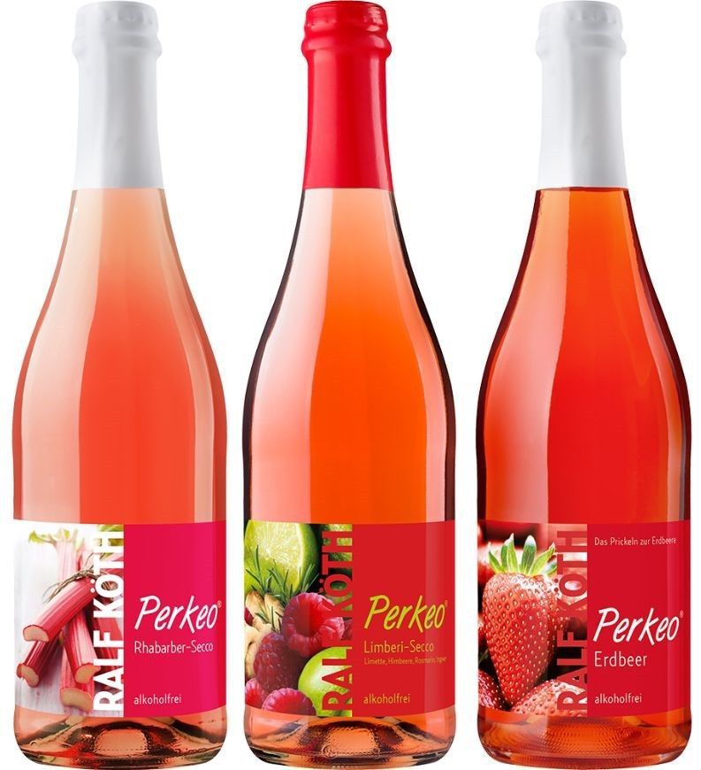 3x Frucht Secco Erdbeer Himbeer Rhabarber Alkoholfrei je 0,75 Liter Rhabarber / Erdbeer / Himbeere