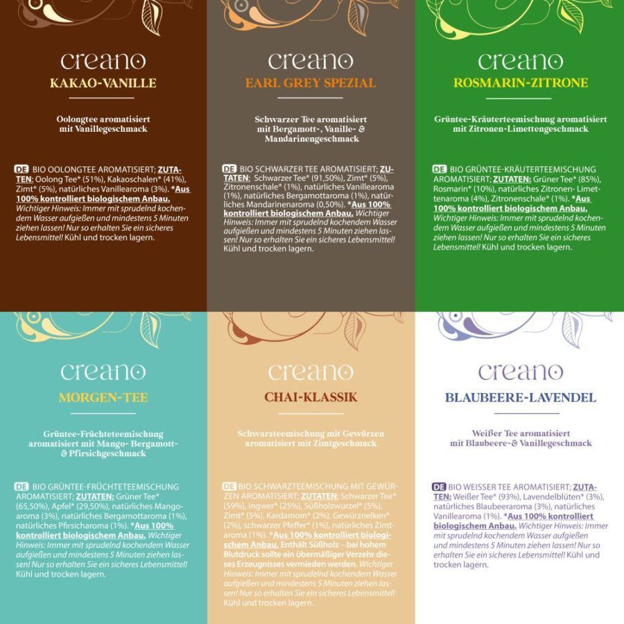 Geschenk Creano Bio Organic TEA BLEND 24 BioTeebeutel in 6 unterschiedlichen Sorte