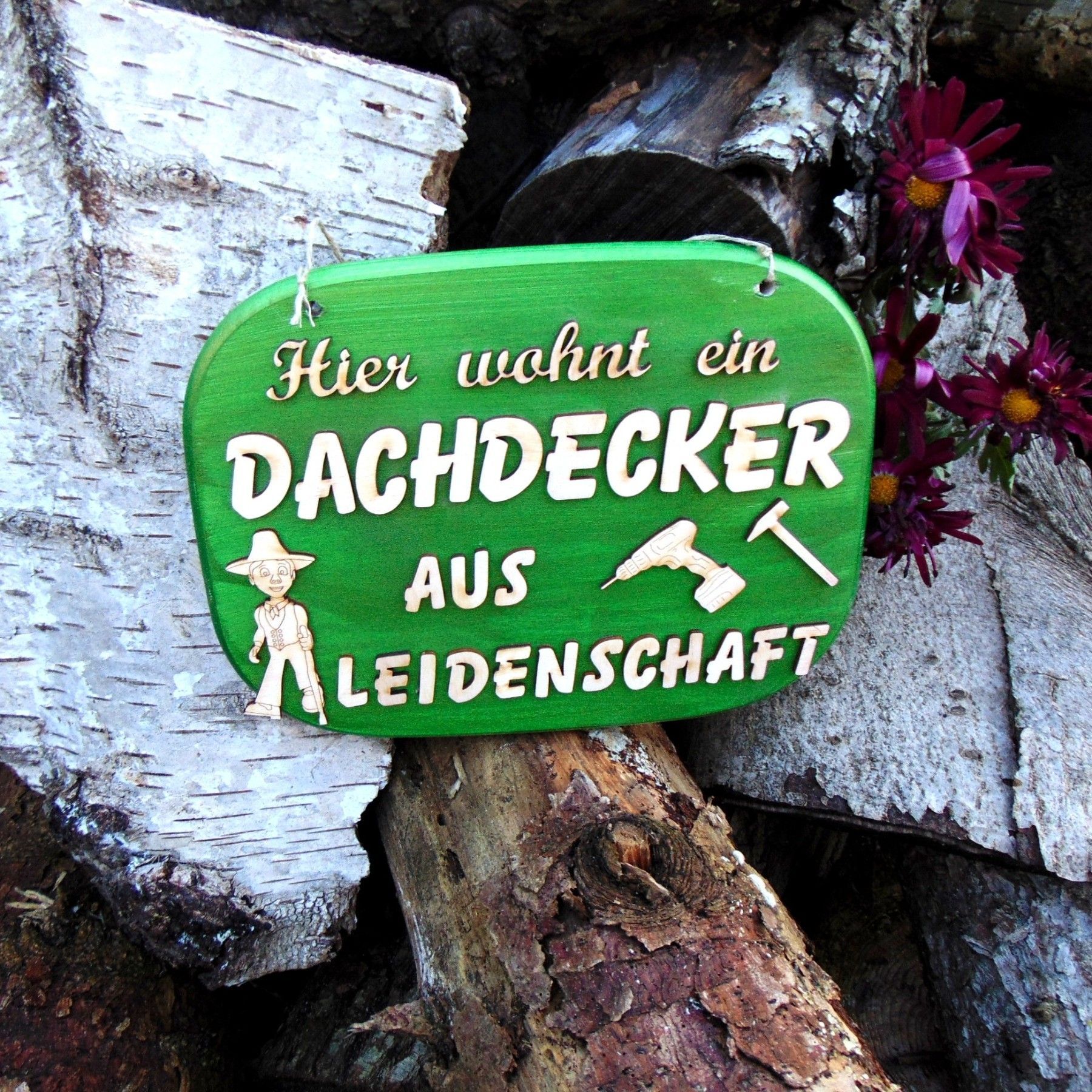 Hier wohnt ein Dachdecker aus Leidenschaft Bemaltes Ahornbrett in der Größe 24 cm breit 18 cm hoch und 1,5 cm stark mit 3 mm Birkenholzbuchstaben beklebt. Geschenk für jeden Dachdecker