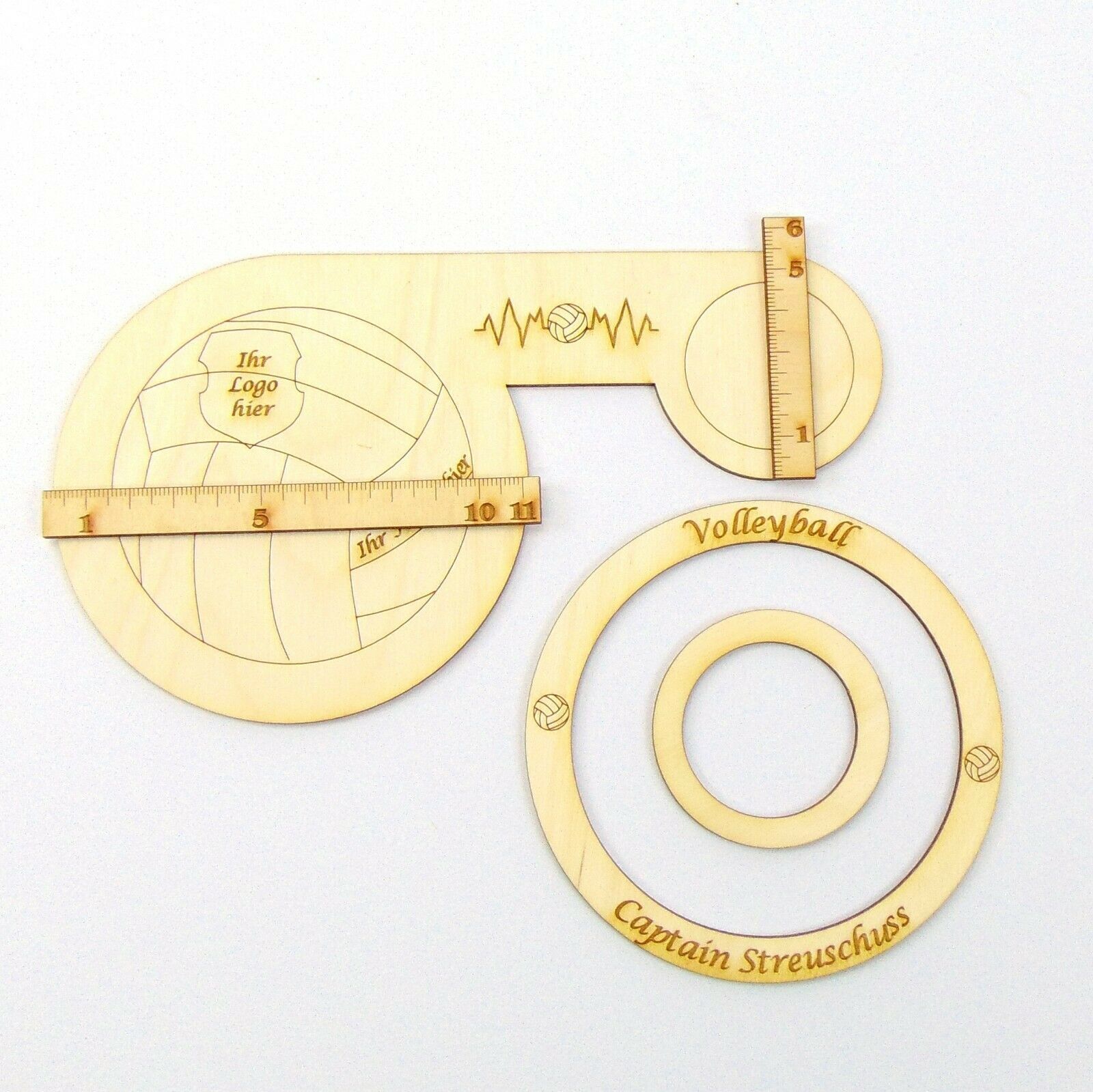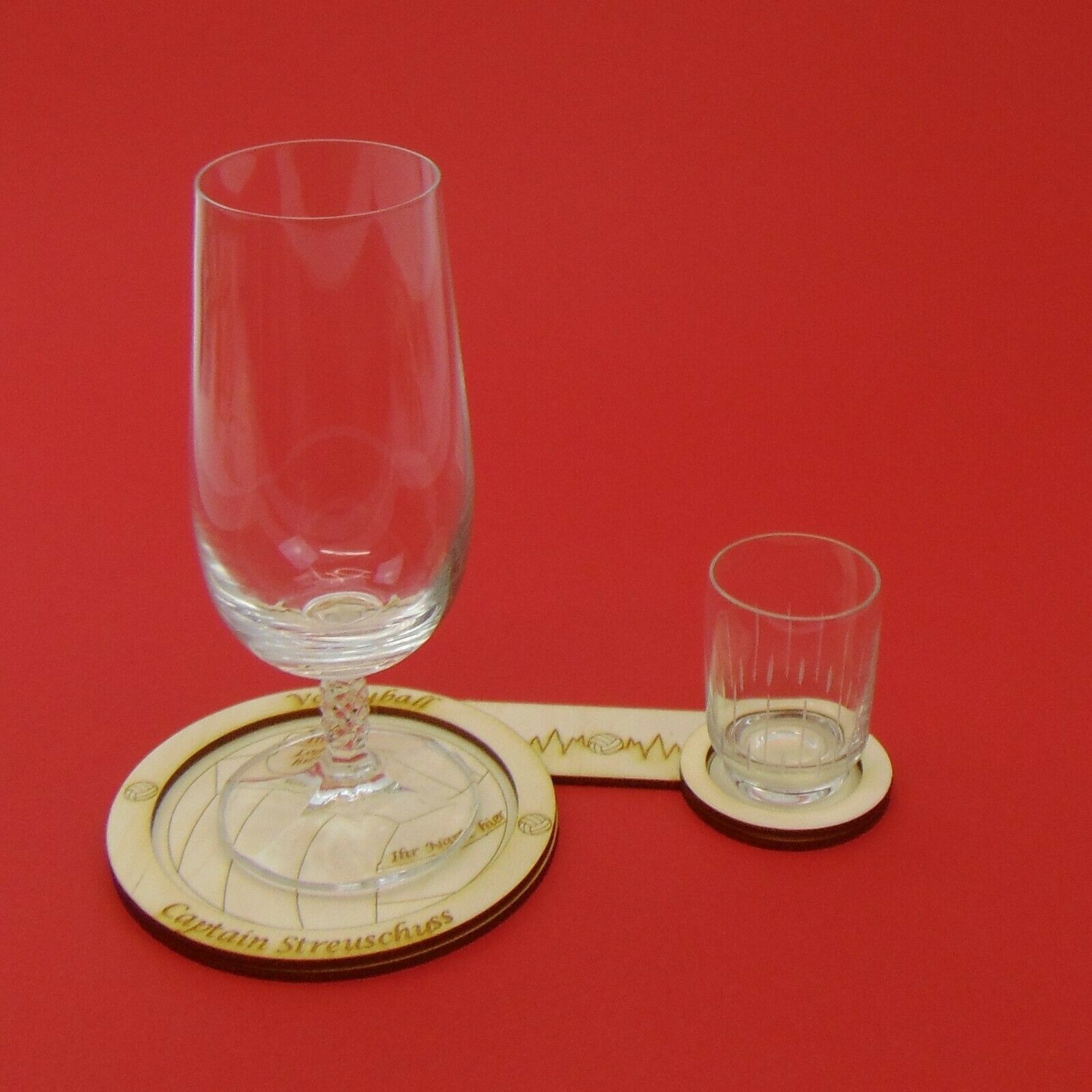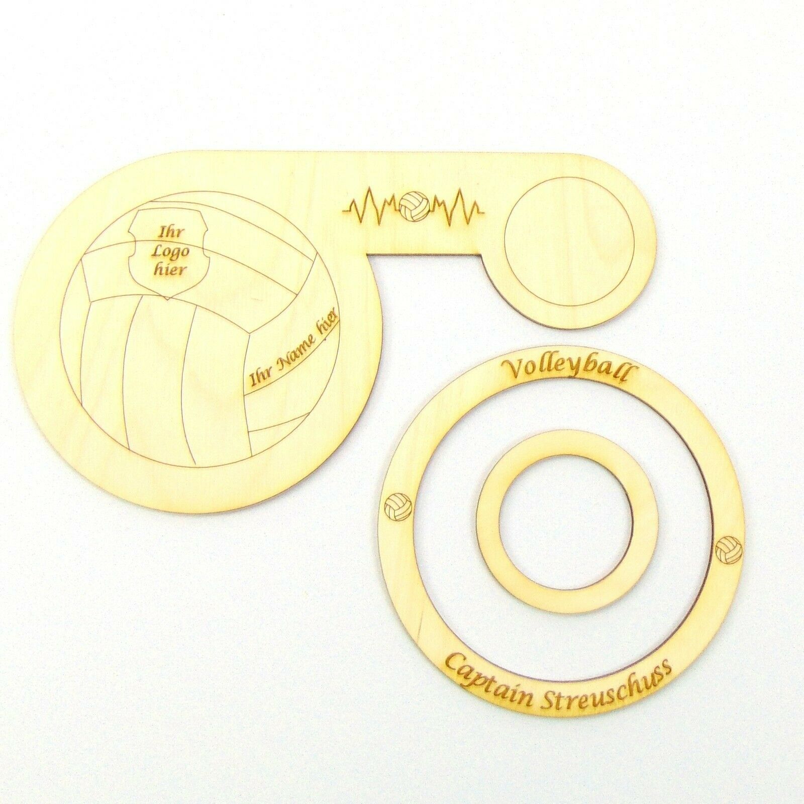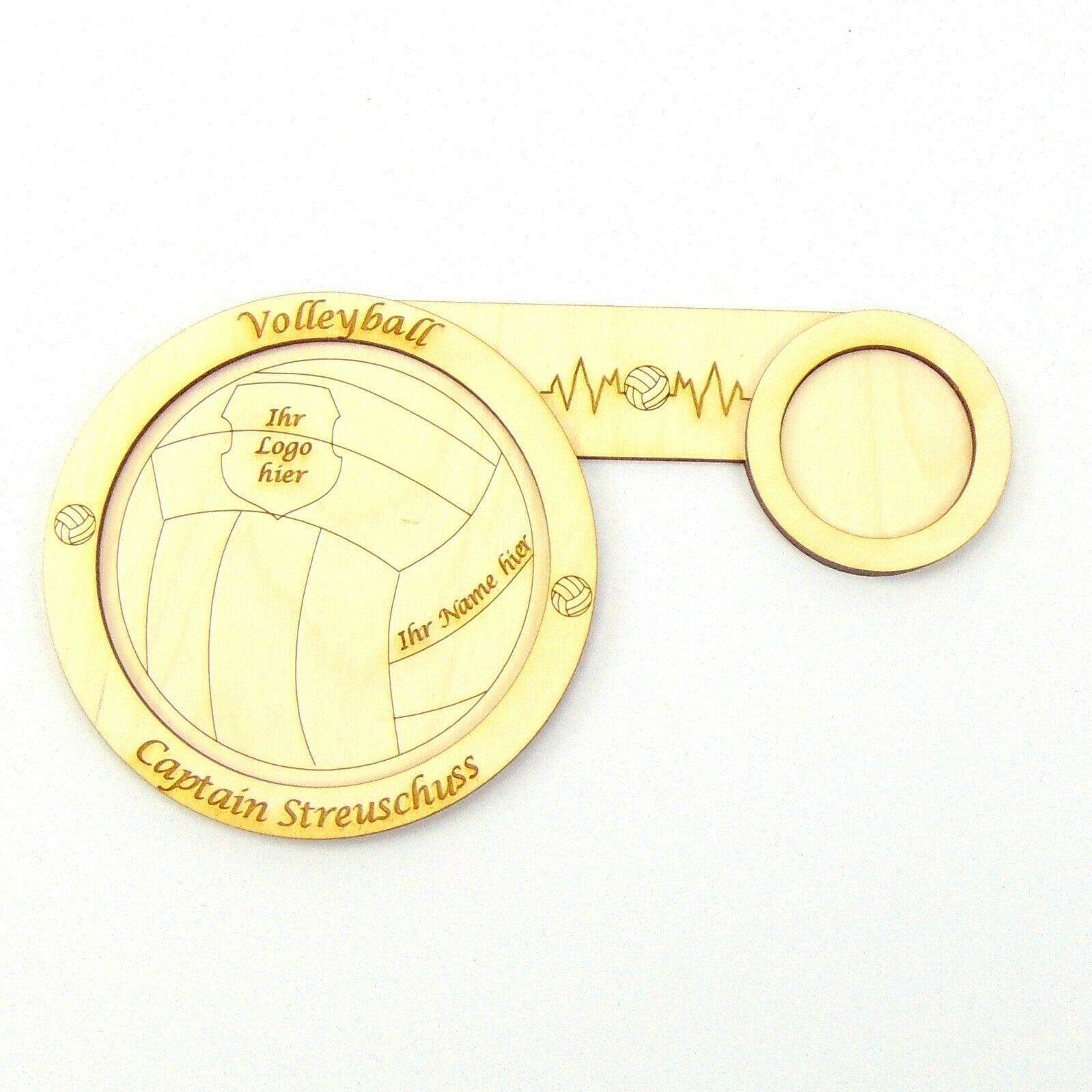 Geschenk für Volleyballer, Untersetzer aus Holz. Volleyball Ihr Name und Ihr Vereins Logo ist möglich. Untersetzer aus Birken Sperrholz für 2 Gläser möglich. Der Außenring ist beschriftet mit: Volleyball und Captain Streuschuss. Änderungen der Wörter sind möglich, teilen Sie mir nach dem Kauf mit, w