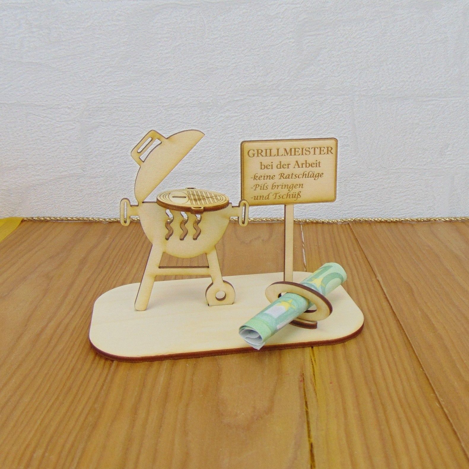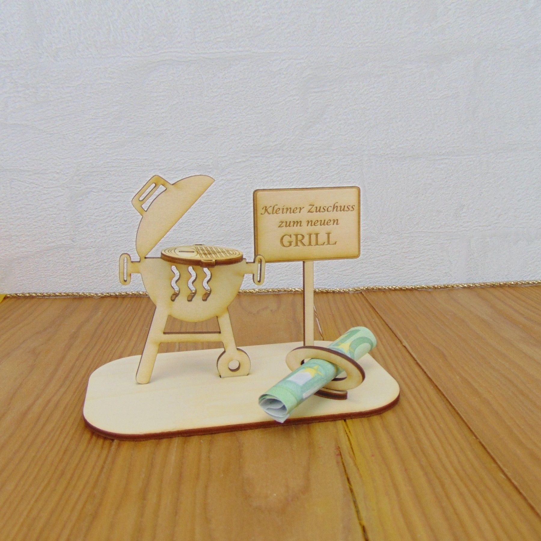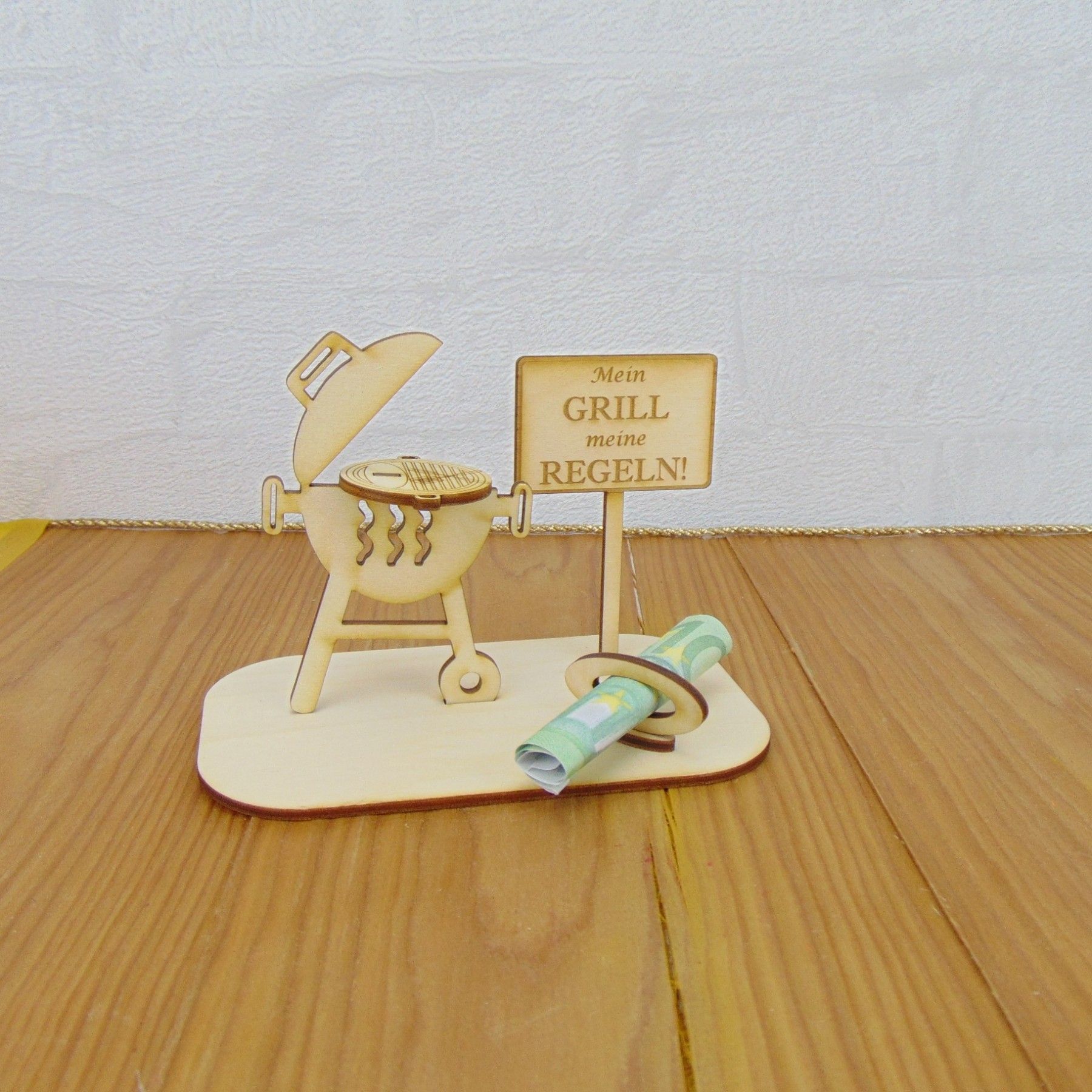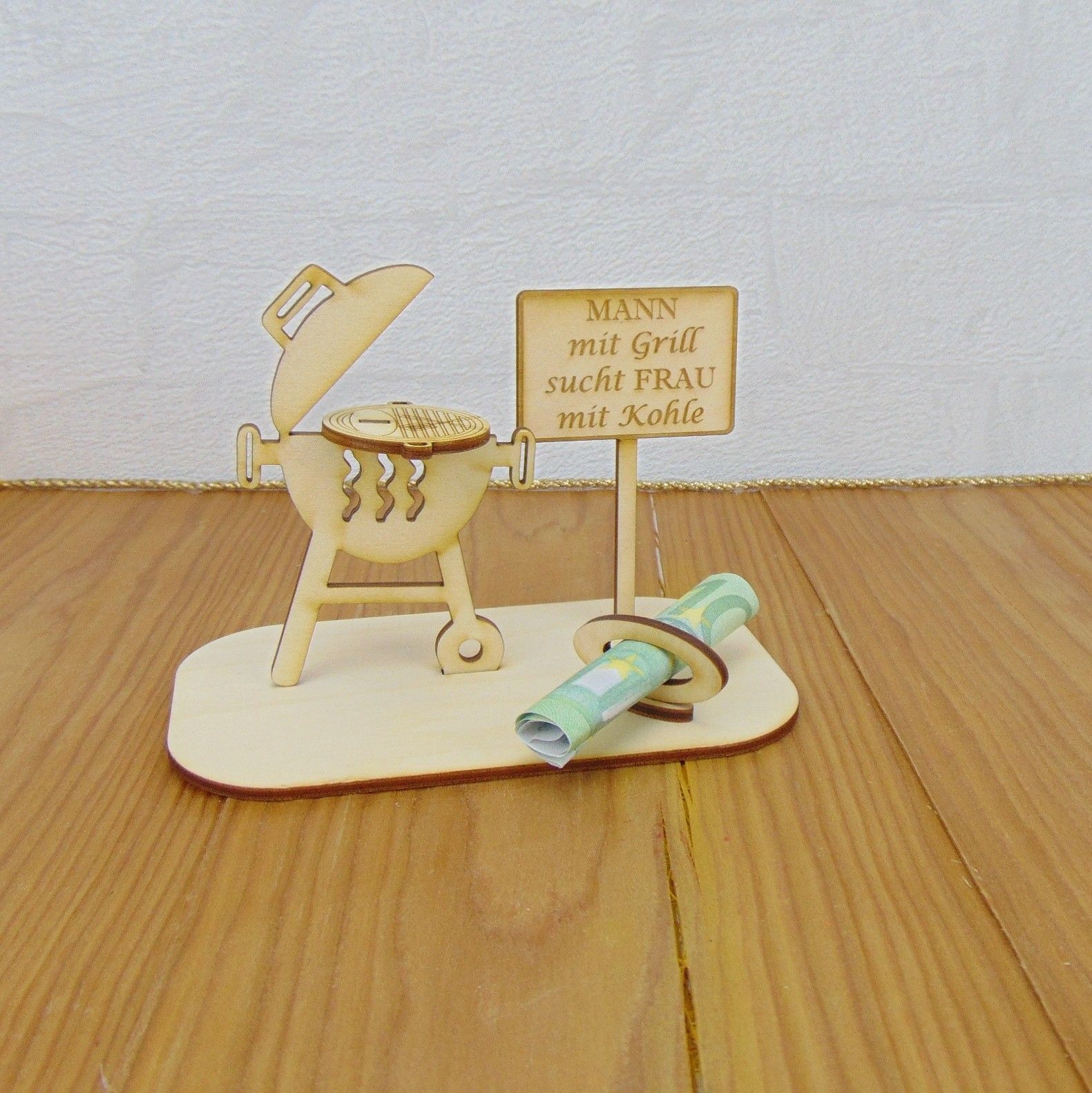 Geschenk Grill, Geldgeschenk 2 teiliger Grill mit Spruch, Geschenkidee aus Holz