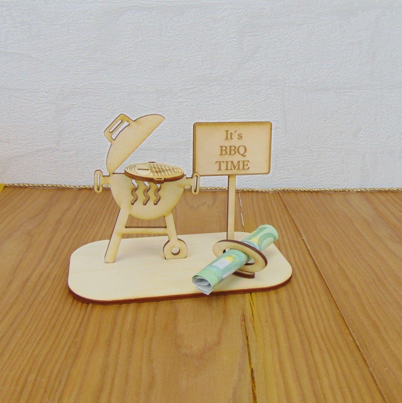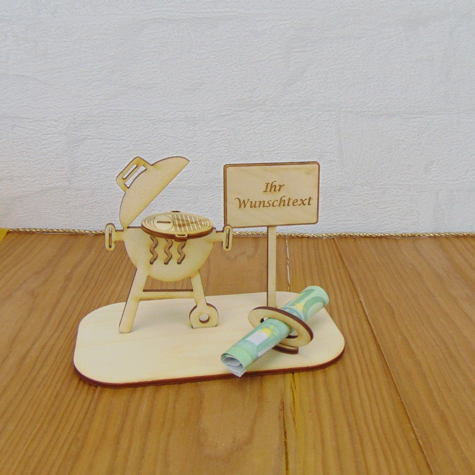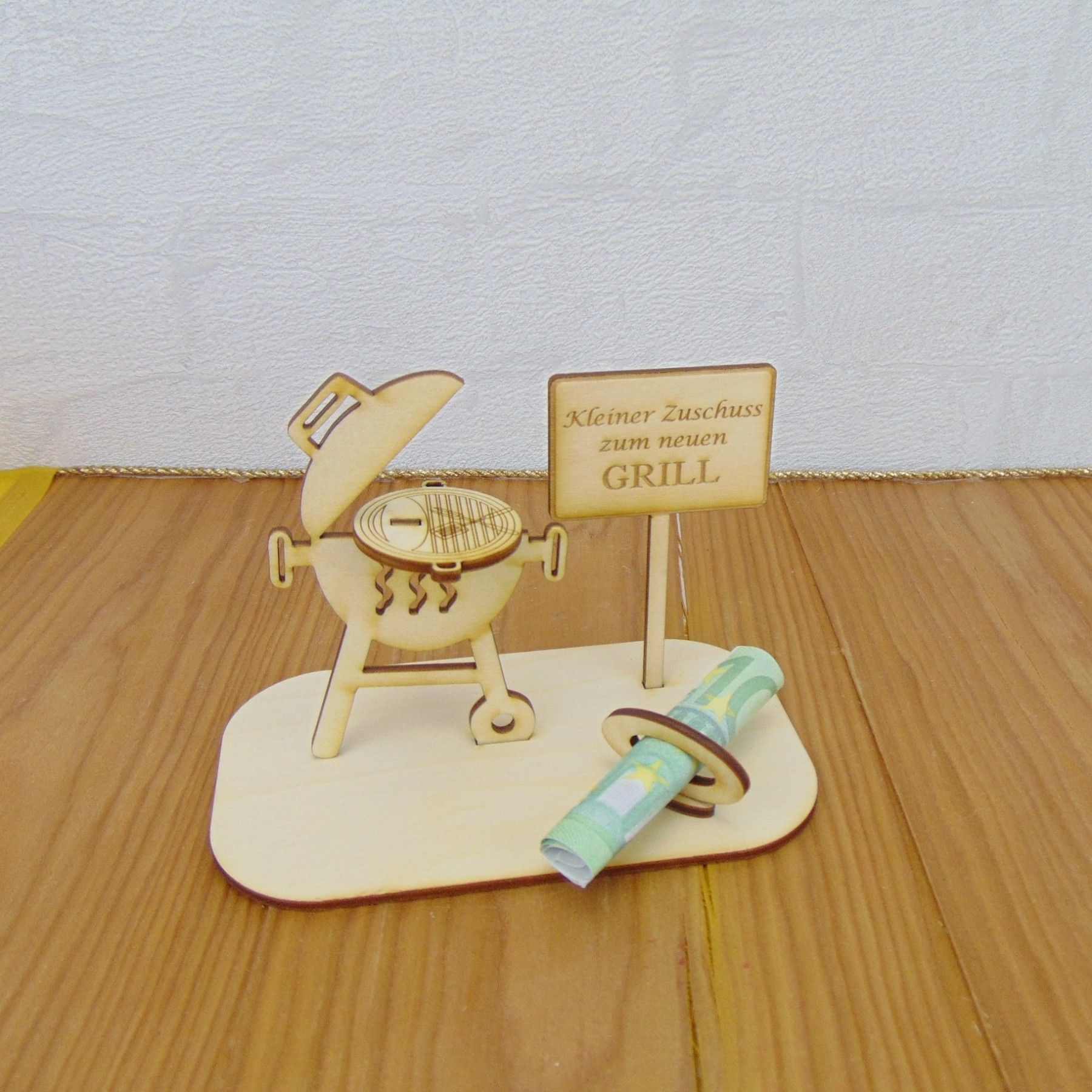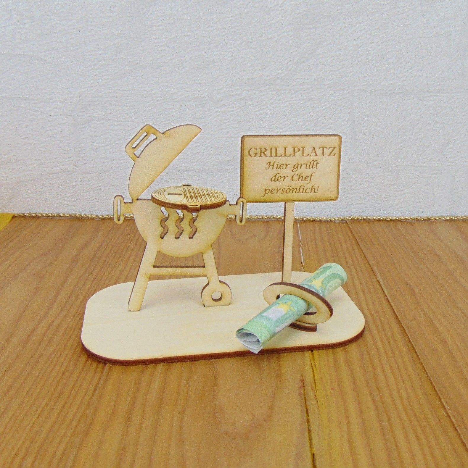 Geschenk Grill, Geldgeschenk 2 teiliger Grill mit Spruch, Geschenkidee aus Holz