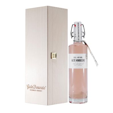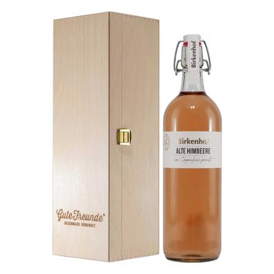 • Birkenhof Alte Himbeere Beerenbrand mit Geschenk-Holzkiste