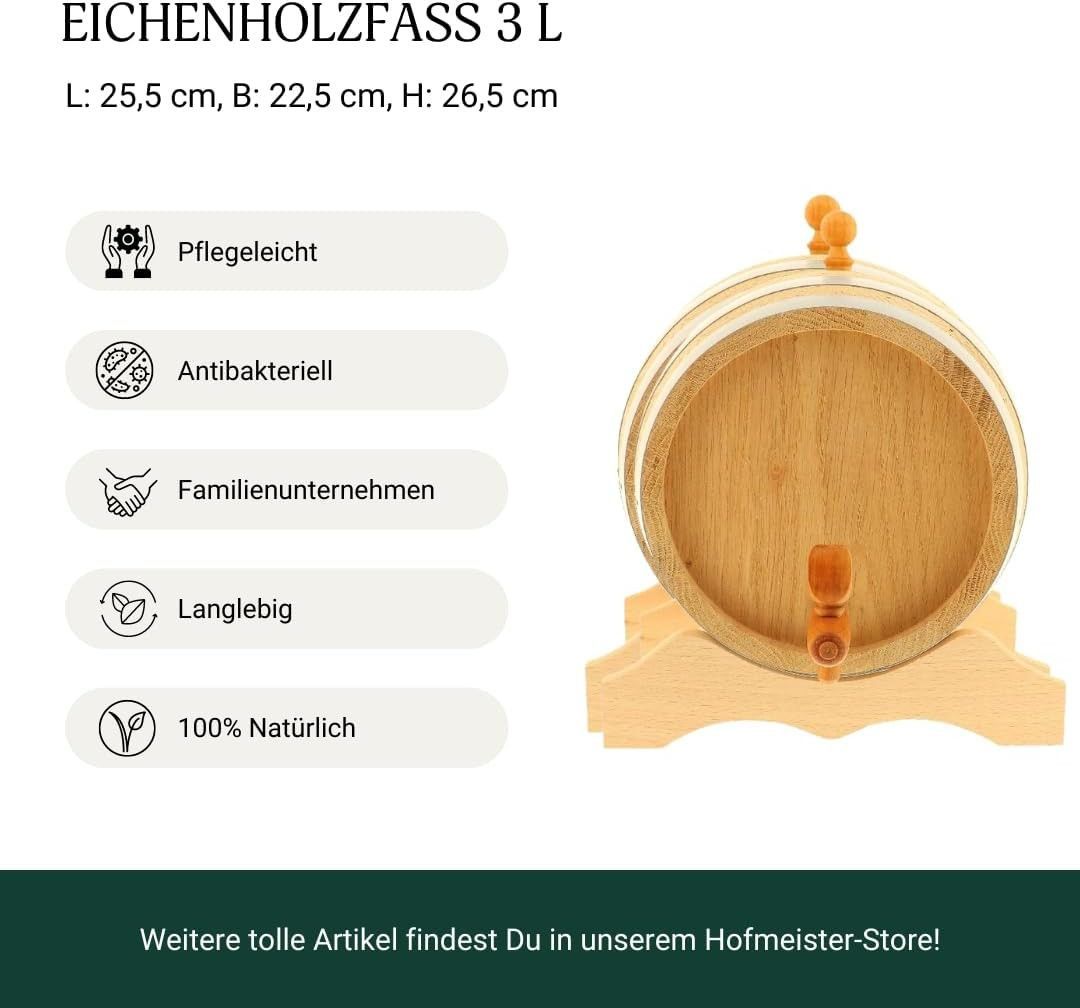 Holzfass Eichenholzfass inkl. Hahn & Bock für Wein, Whisky & Schnaps 3 Liter