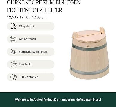 Geschenk Holzfass zum Einlegen Fermentieren von Gemüse, Gurken - Gärgefäß 1 Liter