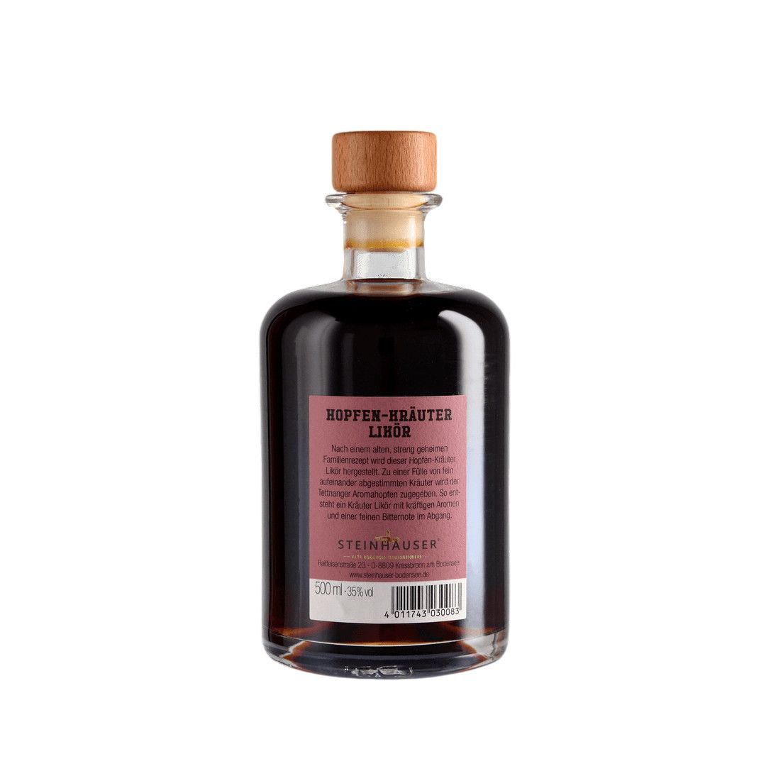 Steinhauser Hopfen-Kräuter Nach einem alten, streng geheimen Familienrezept wird dieser Hopfen-Kräuter LIKÖR hergestellt. Zu einer Fülle von fein aufeinander abgestimmten Kräutern wird der Aromahopfen zugegeben. So entsteht ein Kräuter Likör mit schöner Fülle und einer feinen Bitternote im Abgang. Testen Sie ihn auch als Dessert: leicht erwärmt mit Sahnehaube! Alkoholgehalt Vol.-35% Gebindegröße 0,5 Liter