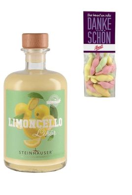 Geschenk Limoncello Likör 0,5 Liter in der Apothekerflasche incl. Dankeschön Mäuse